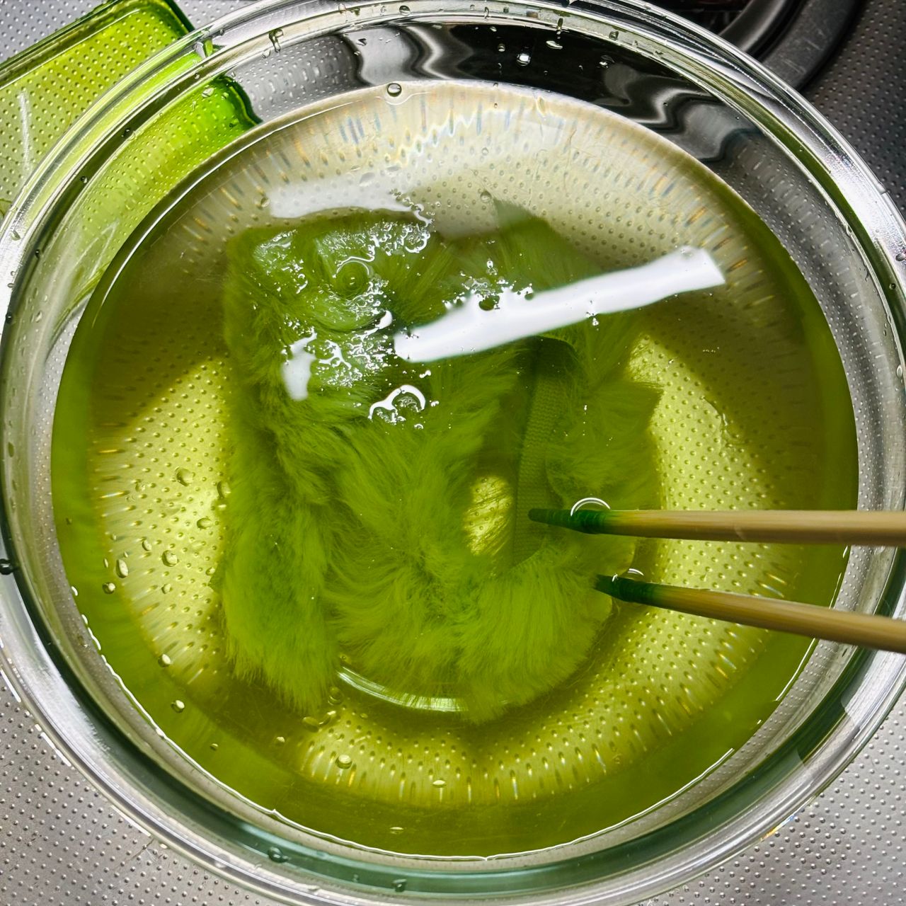 ぬるま湯に浸してグラデーション具合を確認