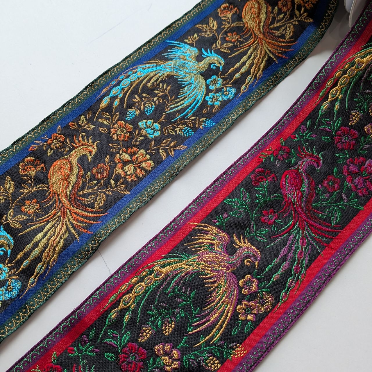 バラ、鳳凰、ジャガード織、ストライプなどデザインや色使いがとても魅力的です。