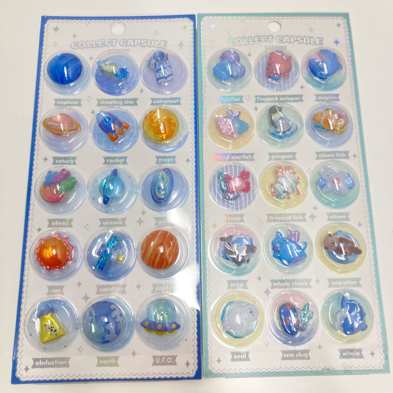 海の生き物柄と宇宙モチーフの3Dシールです★