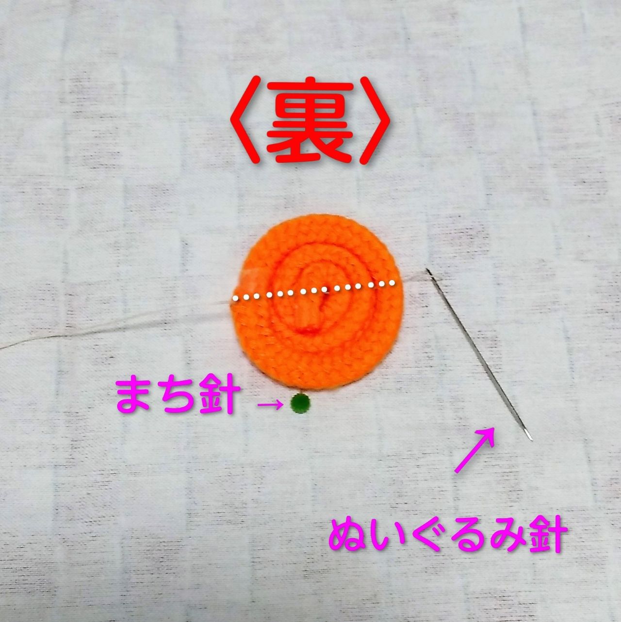 (パーツの形を固定させる際、糸を引っ張り過ぎると円形が崩れるので、程よい加減で)