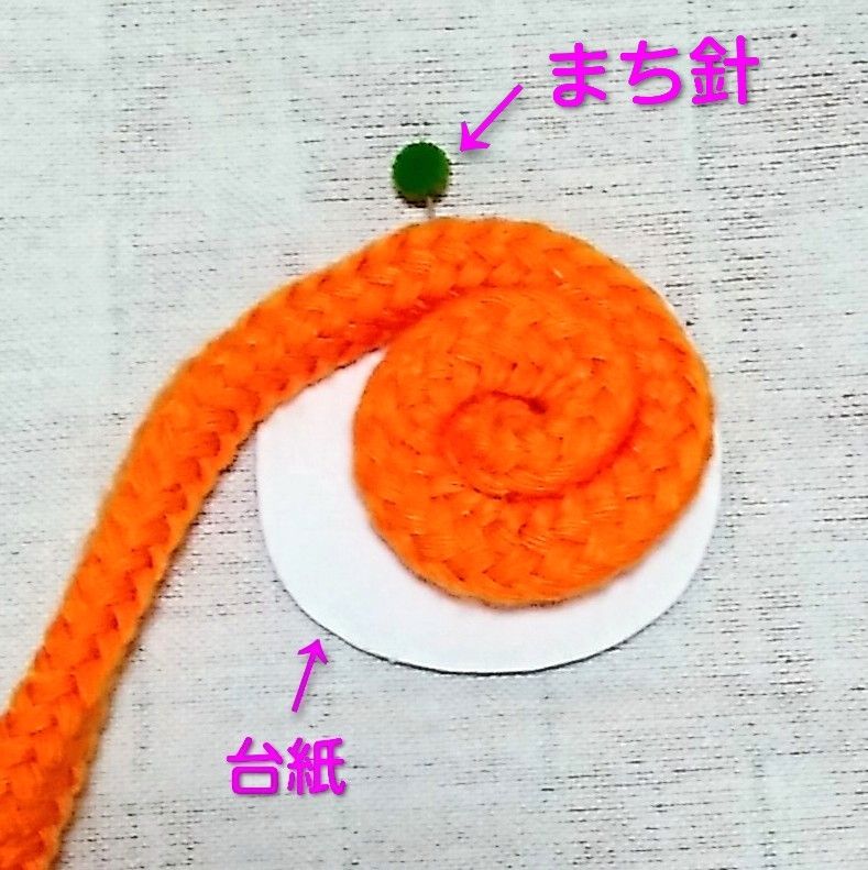 写真のようにコードを台紙の大きさになるように丸くしていきます。