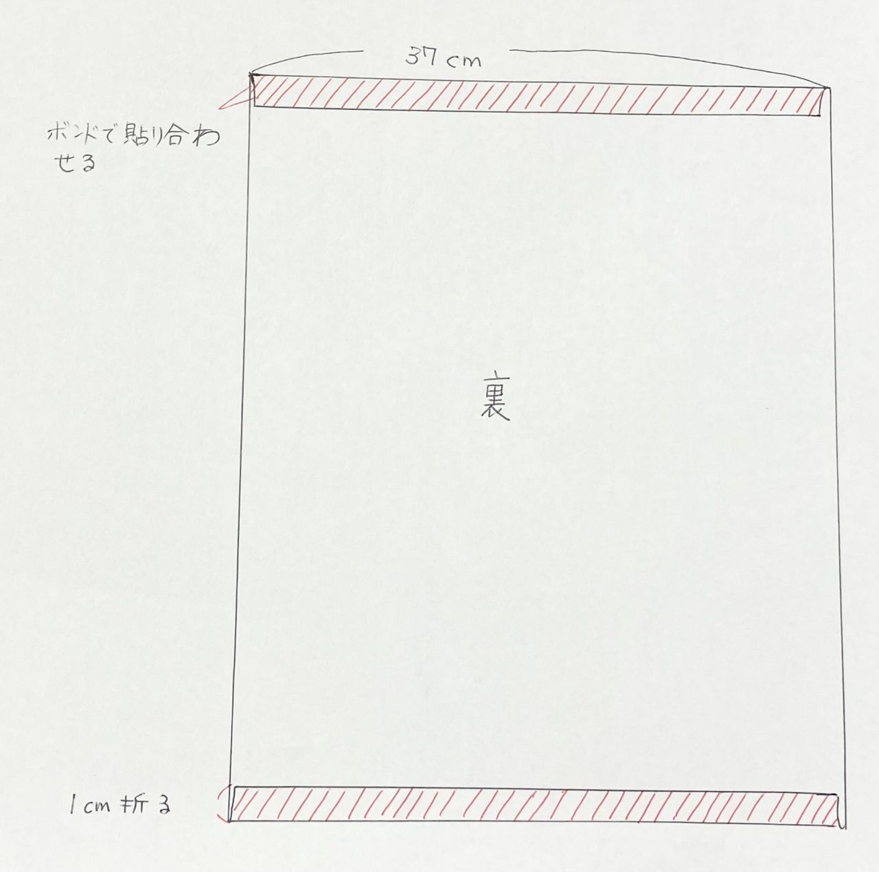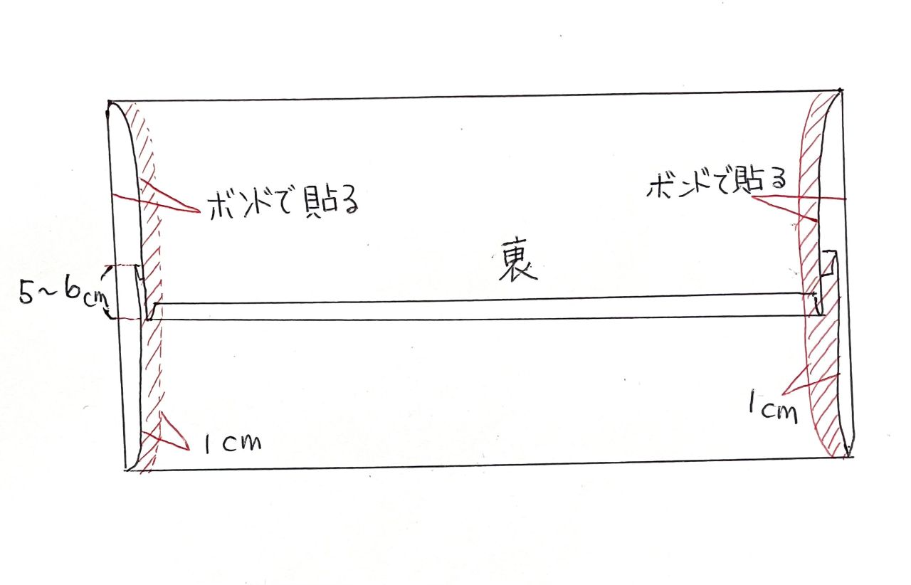 ③左右の端に1cmの幅でボンドを塗って貼り合わせ、乾燥させる