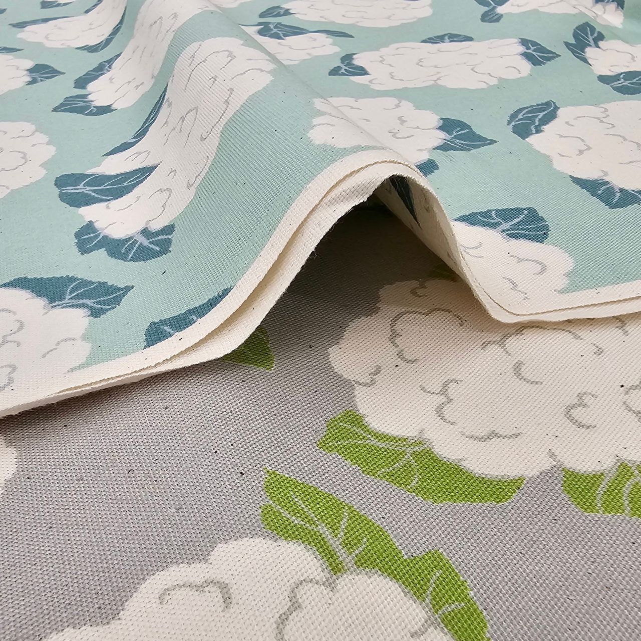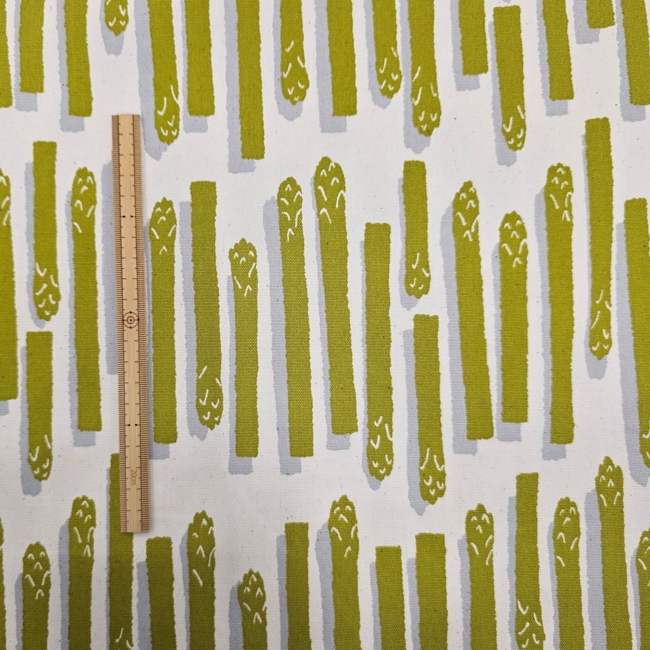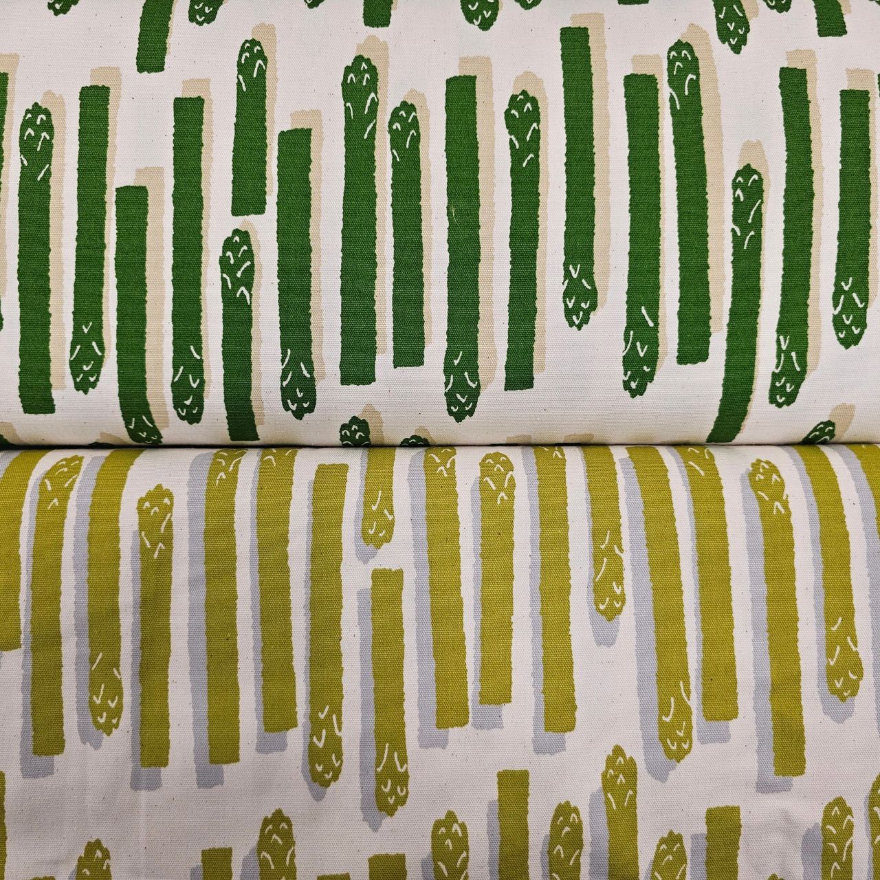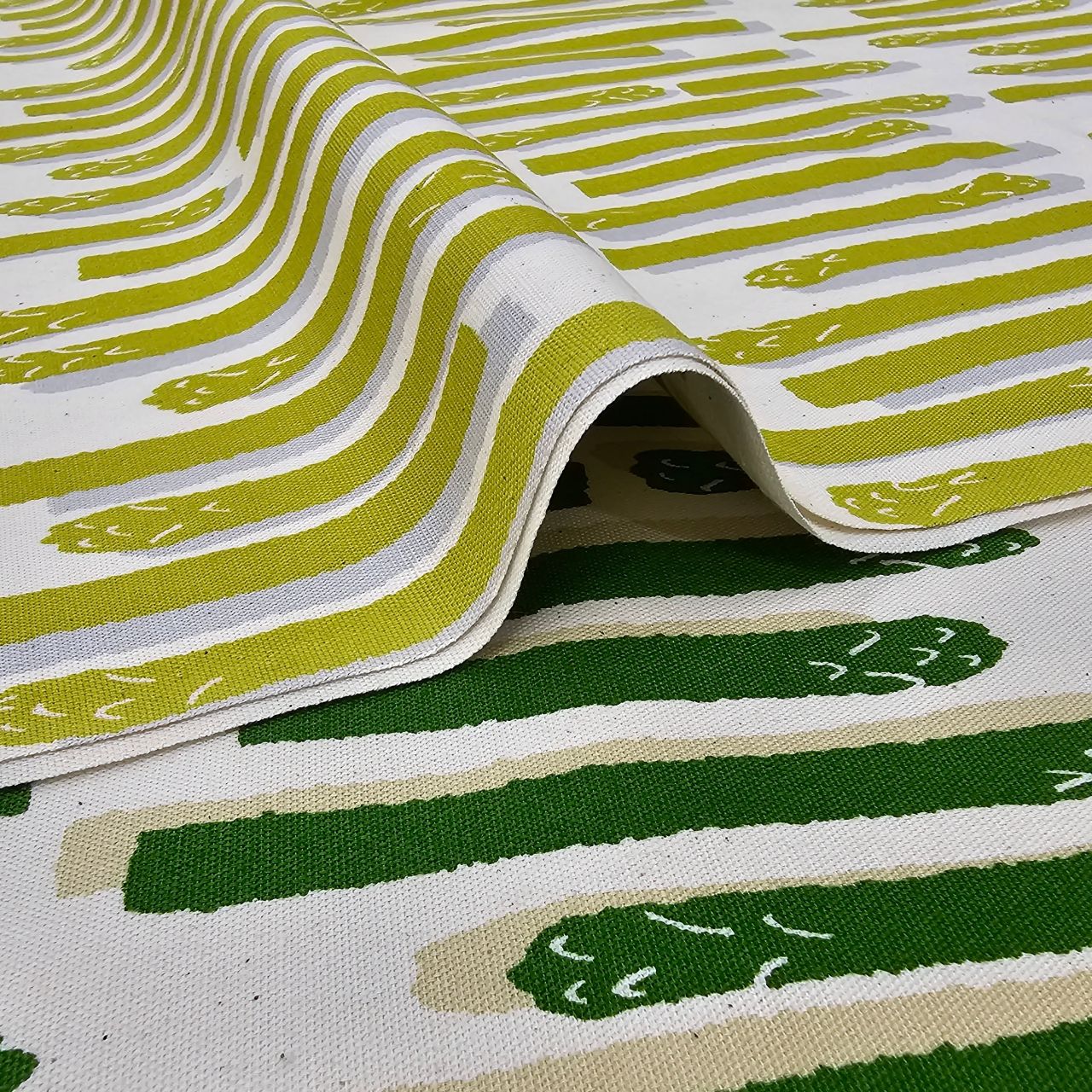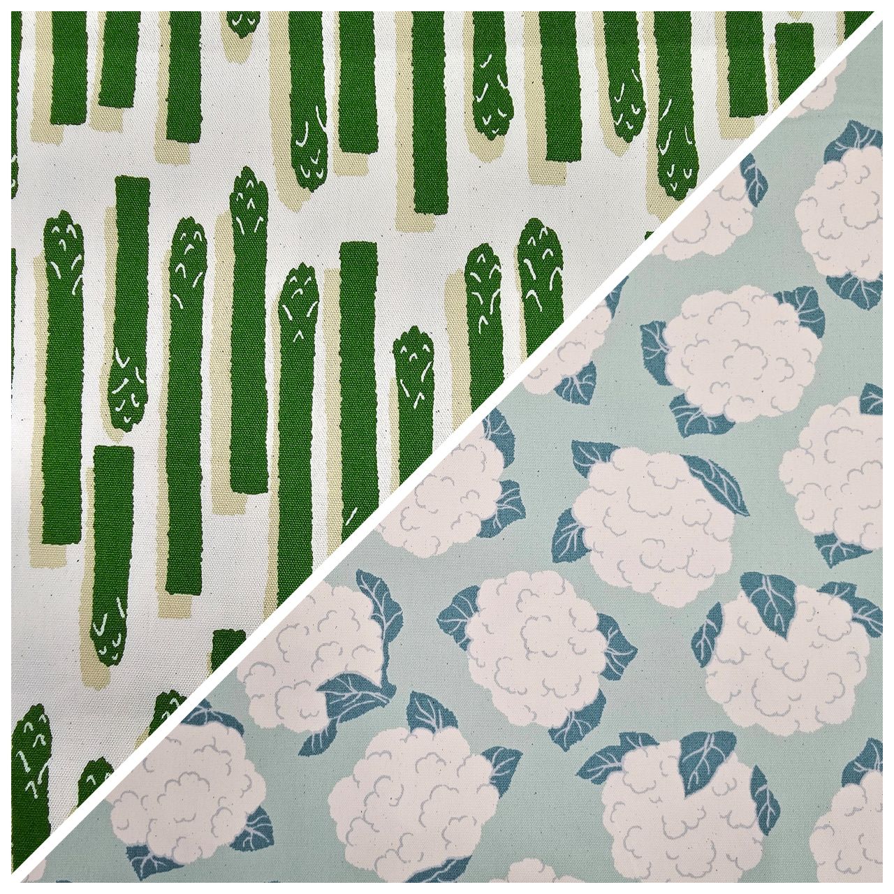 アスパラ&カリフラワー柄の生地が入荷いたしましたのでご紹介します!