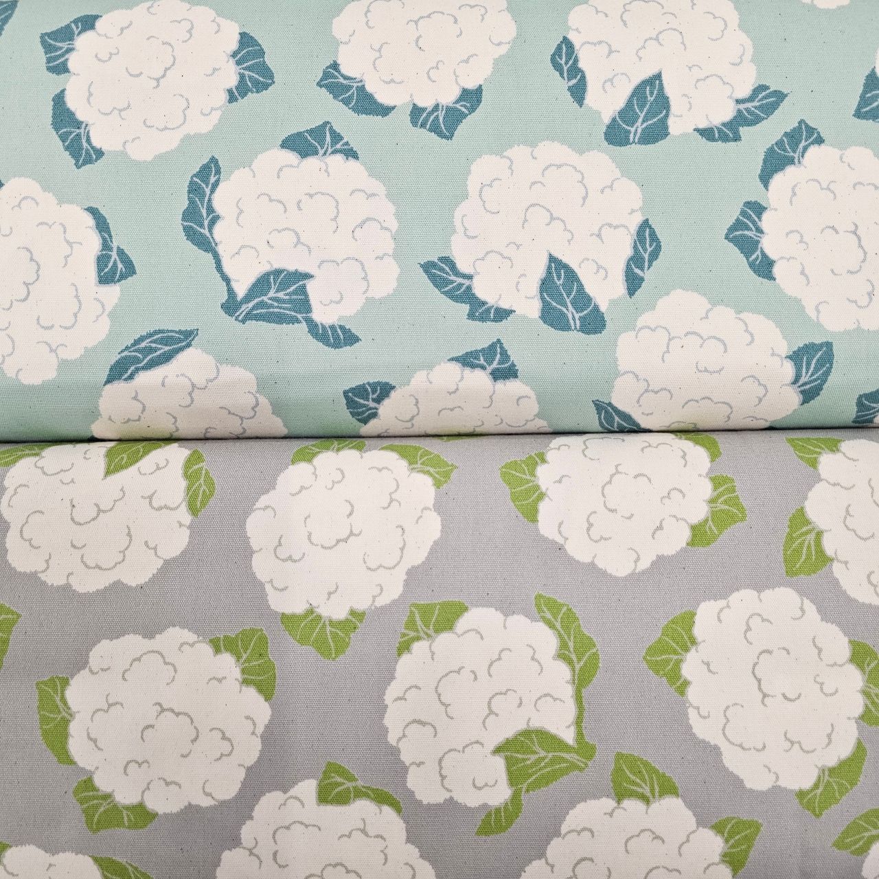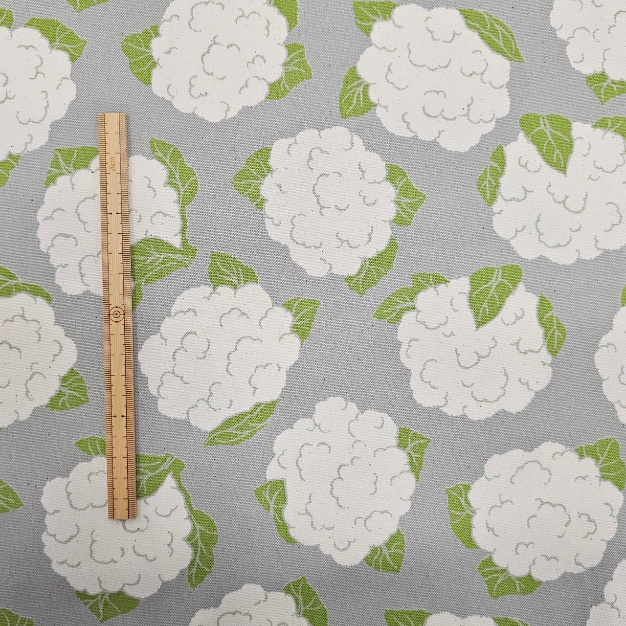 アスパラ&カリフラワー柄の生地が入荷しました