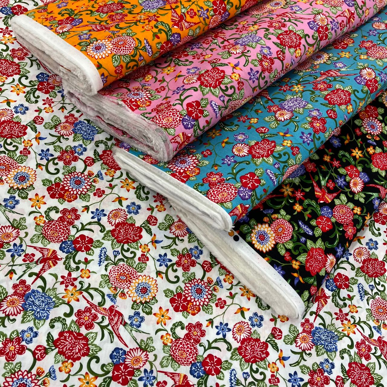 華やかな紅型(ビンガタ)風の生地