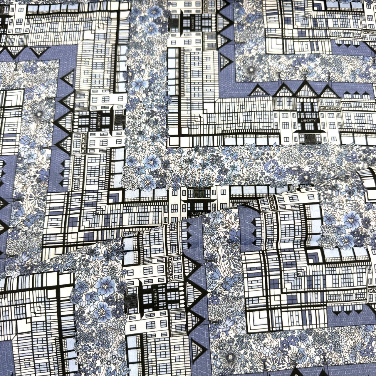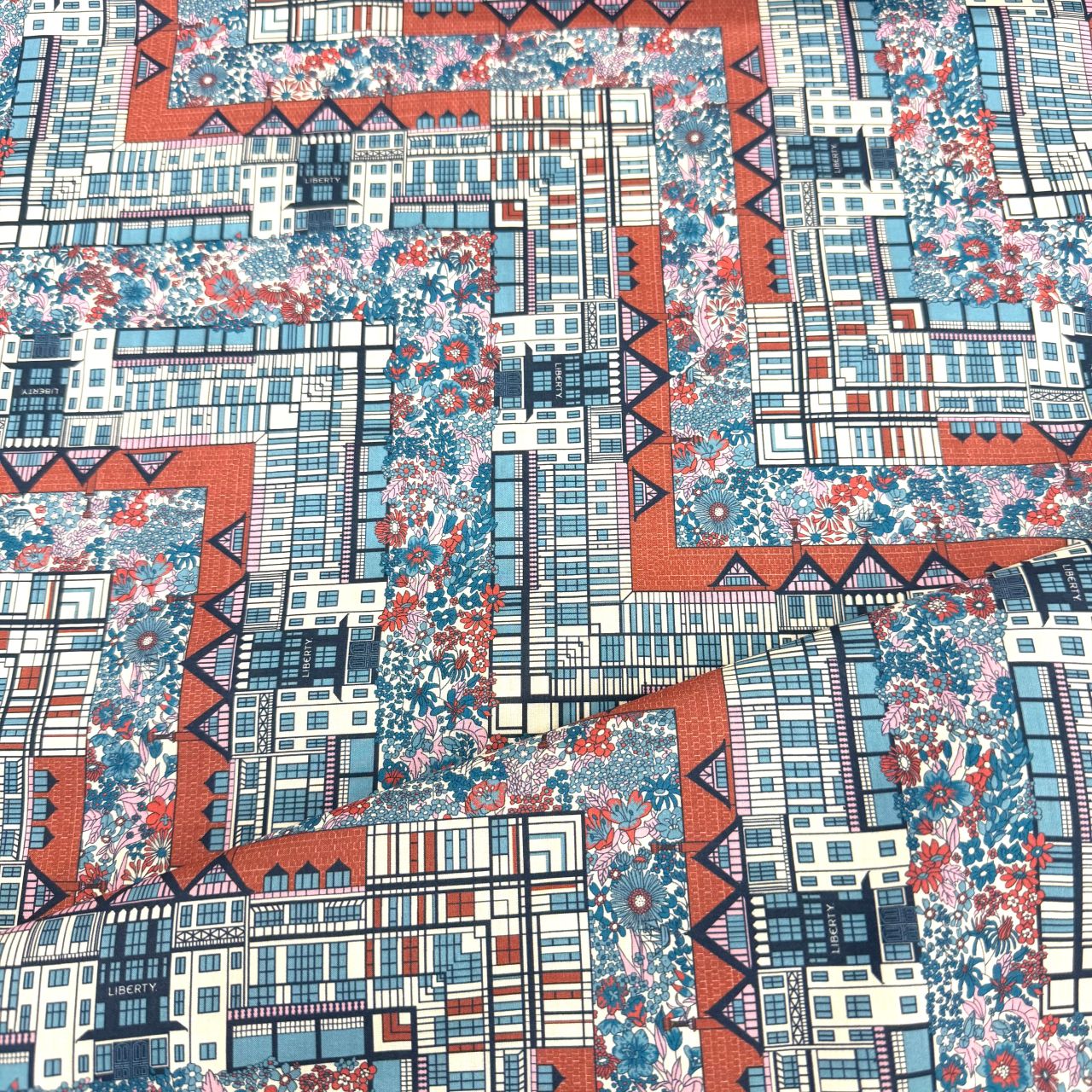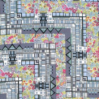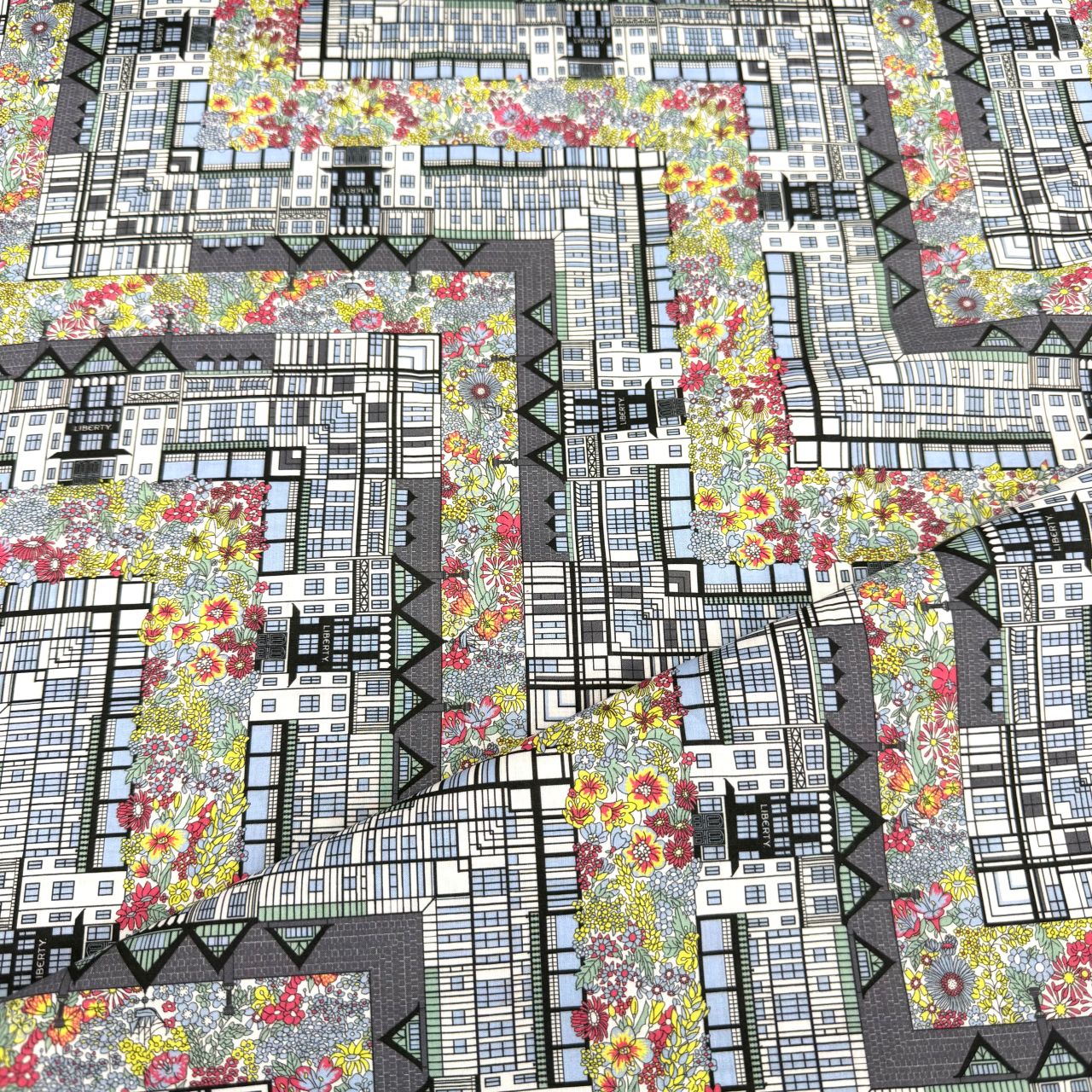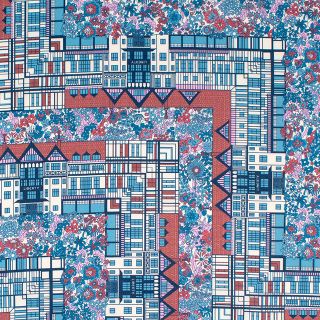 リバティを象徴するロンドンのフラッグシップストアへのオマージュとして描かれた、フローラルモチーフと建築的な幾何学要素を組み合わせたデザインの「チューダー・ベル」。