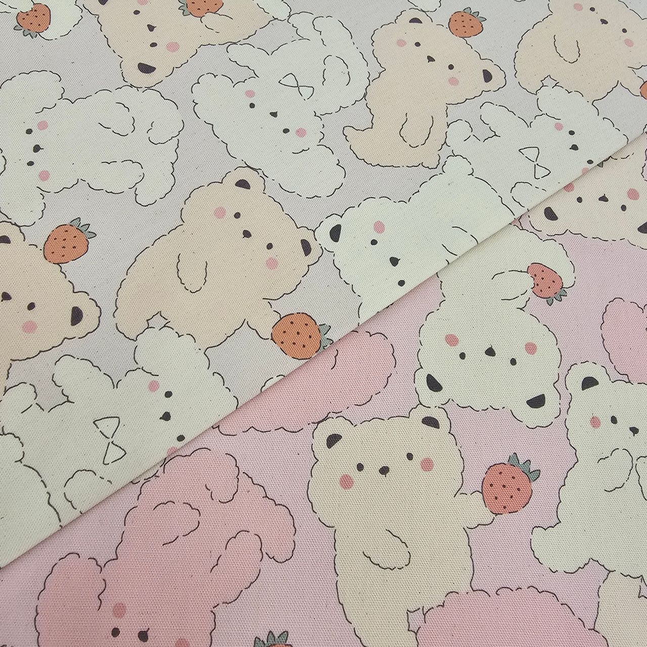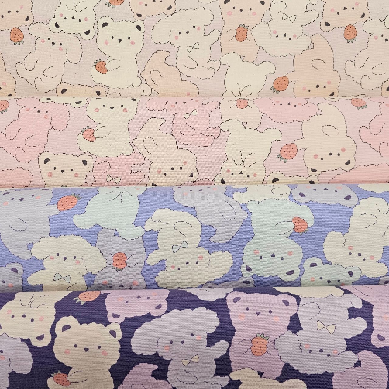 パステルカラーが可愛いテディベア柄の生地が入荷しましたのでご紹介します!