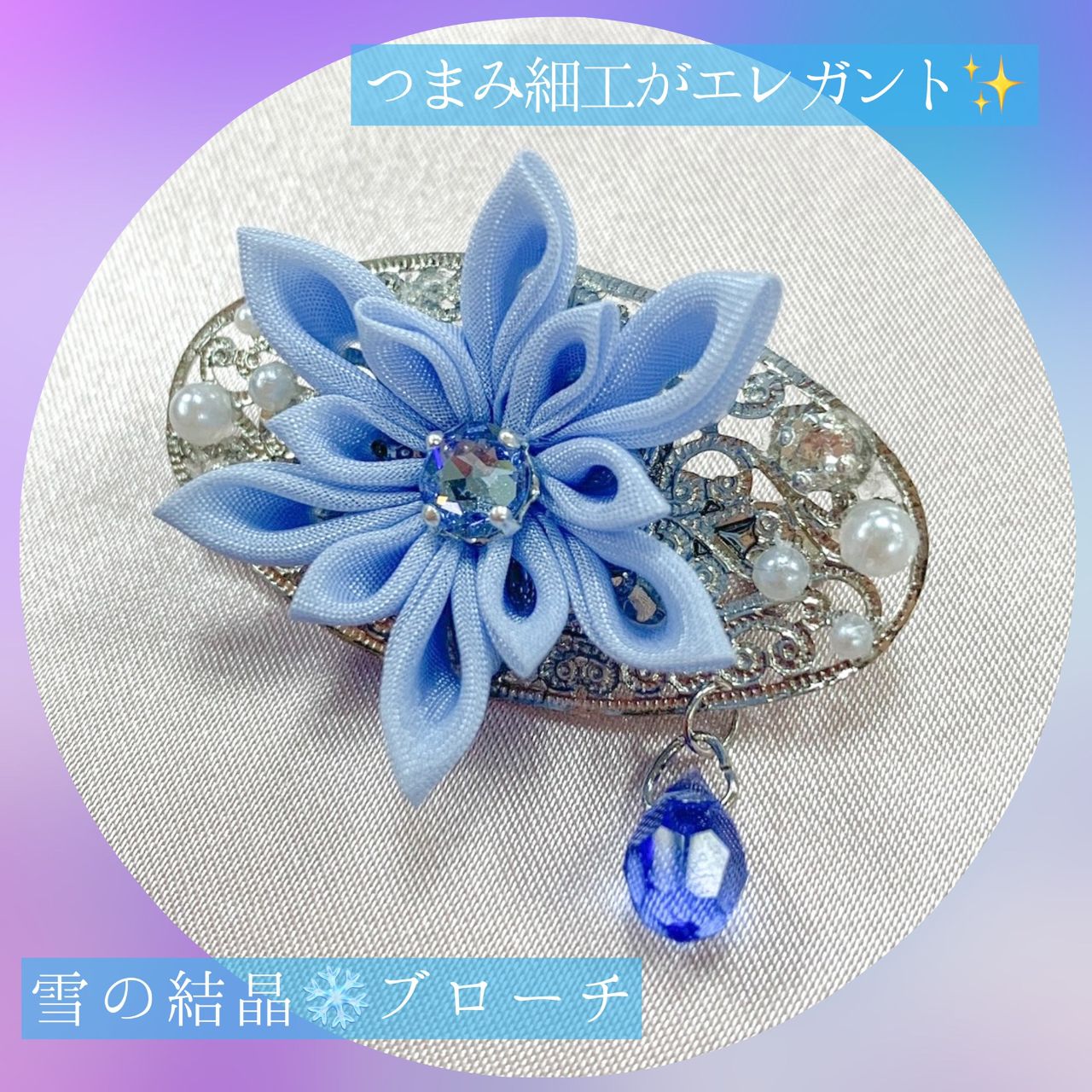 推しカラーで雪の結晶をイメージして、つまみ細工のブローチを作りました!
