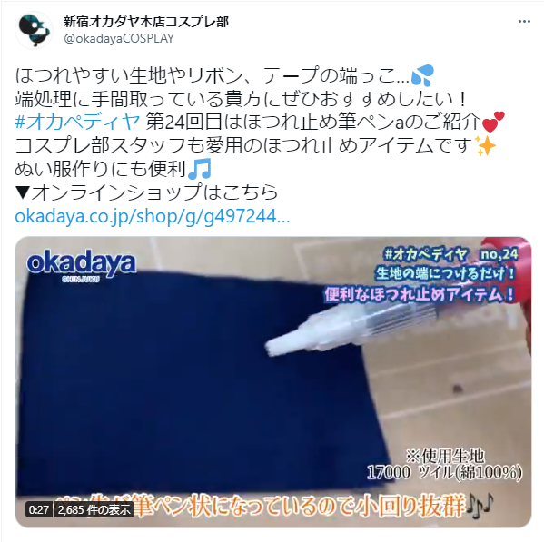 ・品名:ほつれ止め筆ペンα※タップでオンラインショップにアクセス!