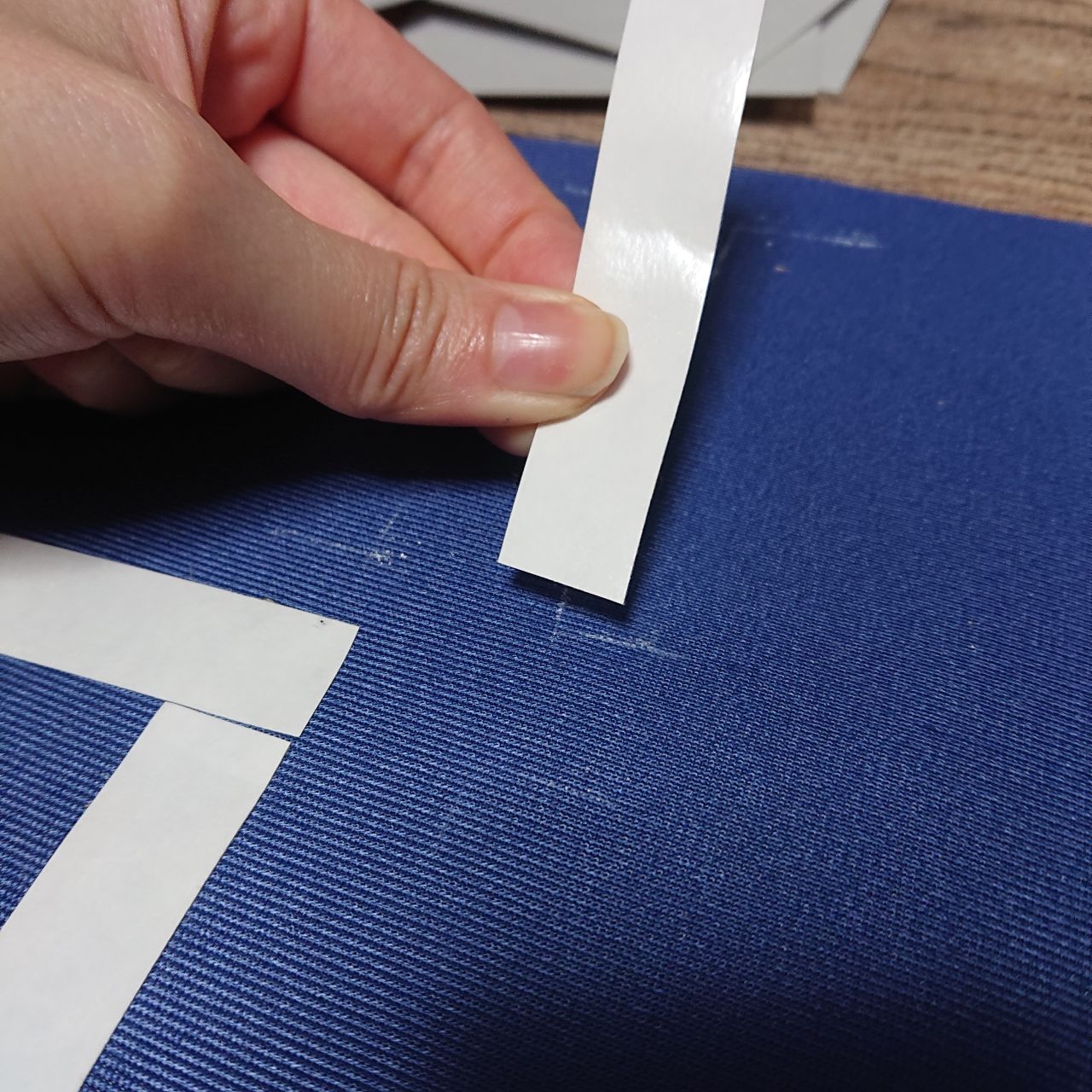 6:両面テープを半分に切り、ライン状にしたテープを貼り付ける。