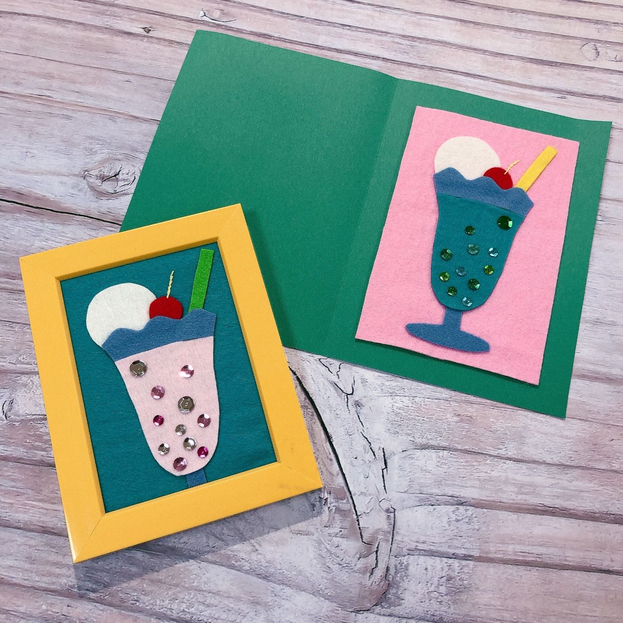 フェルトのメーカー、サンフェルトさんからステキなレシピを頂きました!フェルトでモチーフを切ってボンドで貼って、飾って可愛いフェルトピクチャーです☆