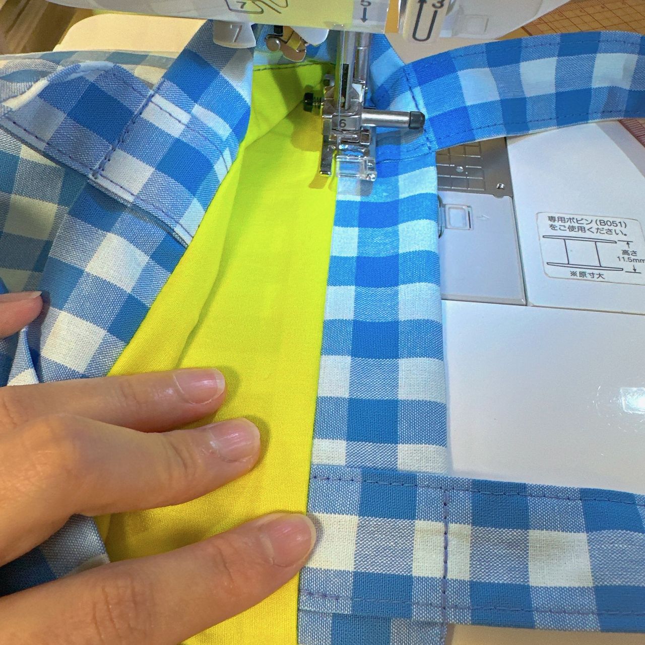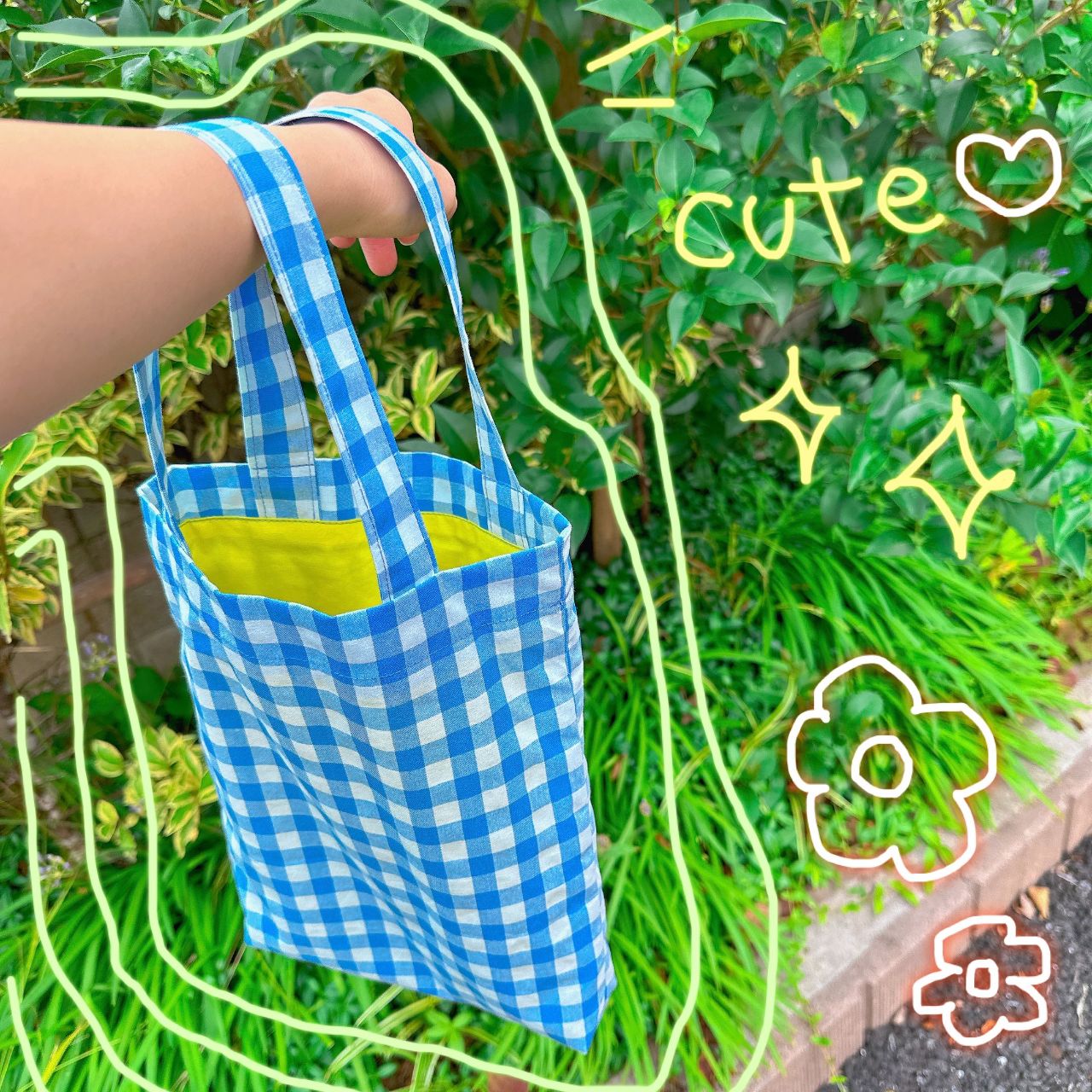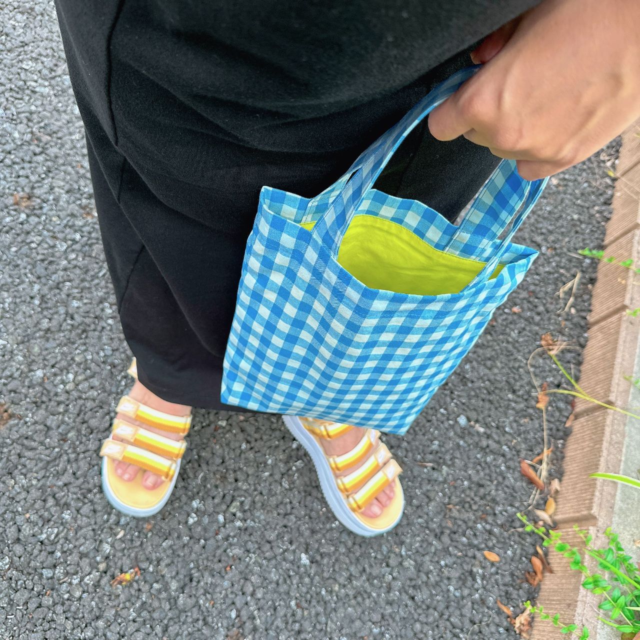 夏にぴったりな配色(水色ギンガム×イエロー)のトートバッグを使ってみました!夏はなんだかギンガムチェックを身につけたくなります♪