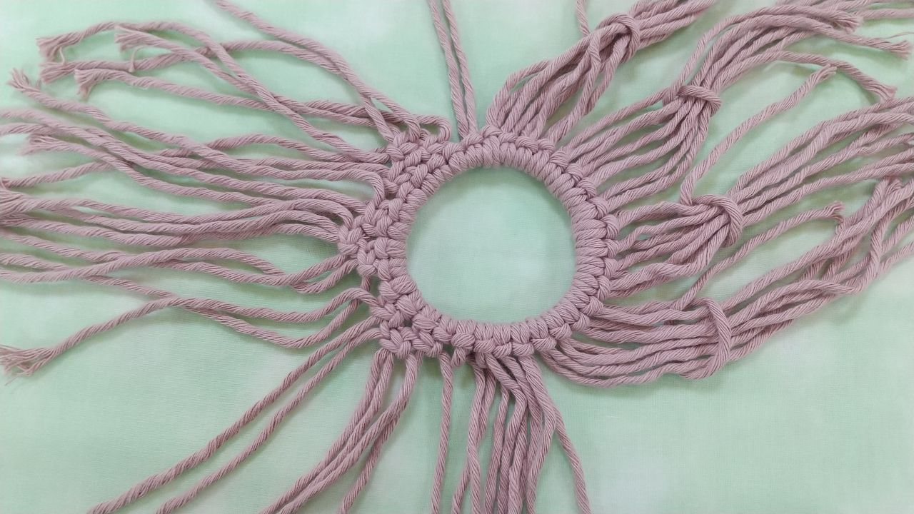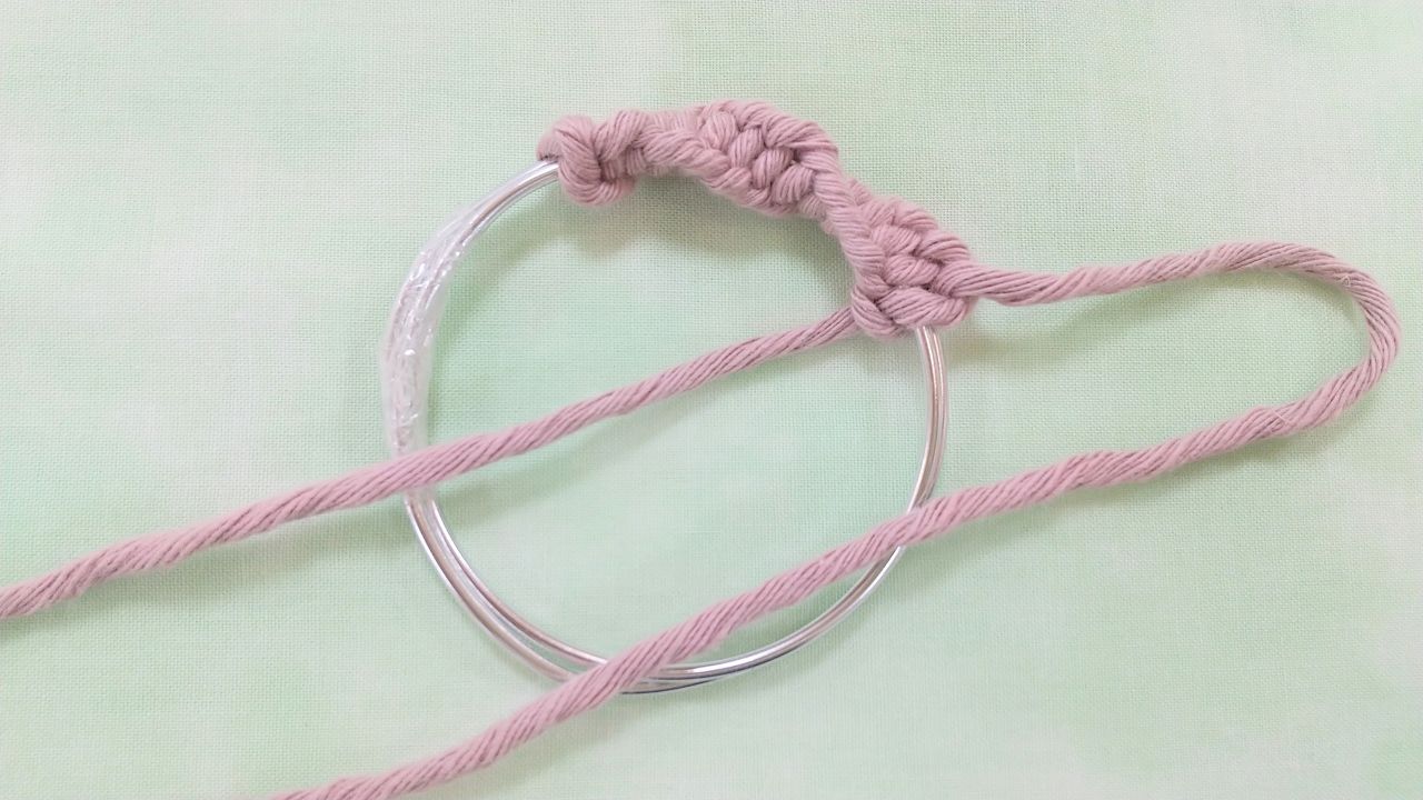*マクラメ糸約40cmを32本と長いヒモ1本用意します