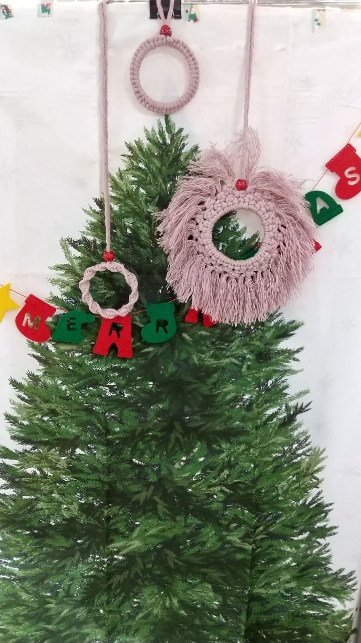 マクラメ糸ひとかせで3種類のオーナメントが作れました~(^o^)