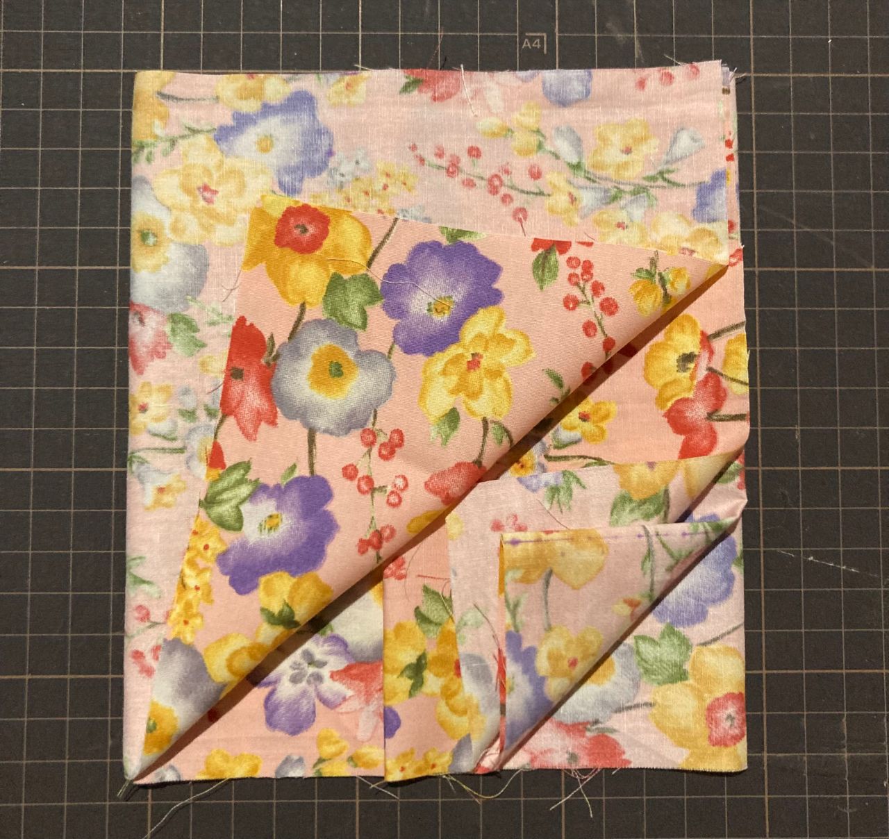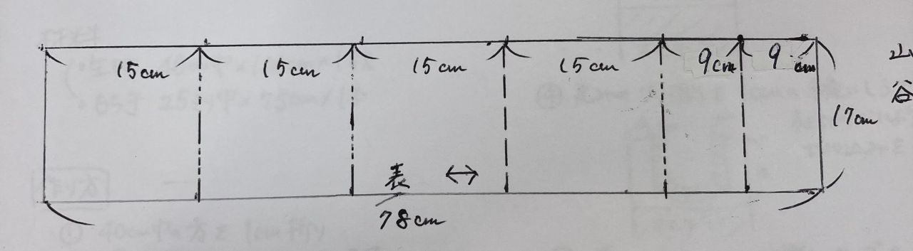 ①生地を切り 表に印をつけます