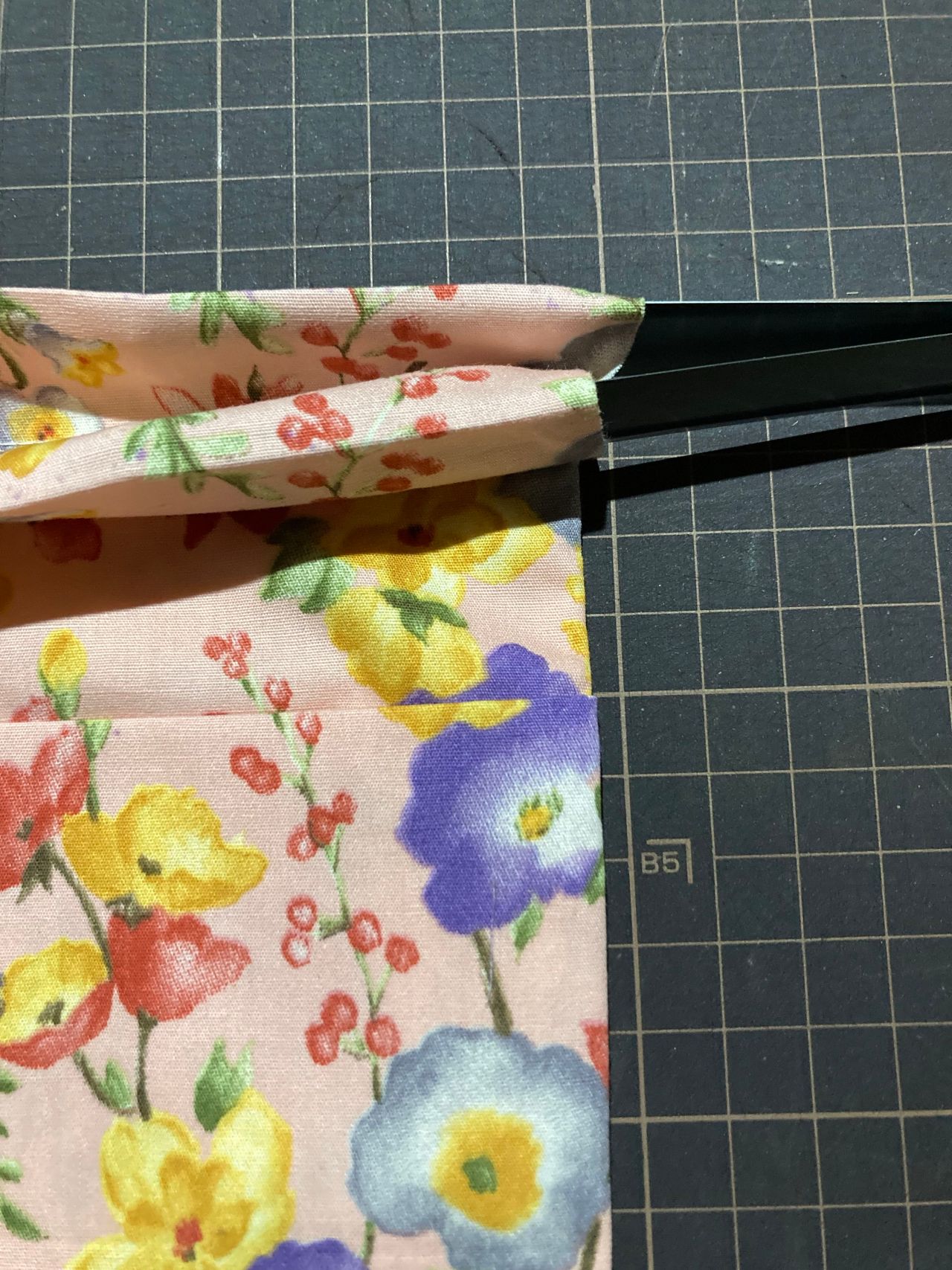 上から2.5cm下がった所から縫代1cmで両脇をぬいます