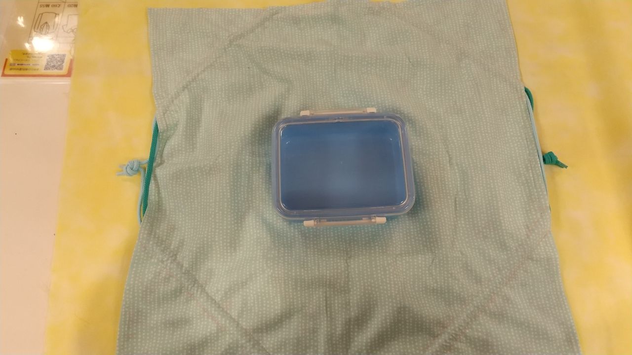 先日お客様より「広げるとランチョンマットで、ヒモを引っ張ると巾着になるお弁当入れを探してる」とありまして、ちょっと調べて作ってみました!