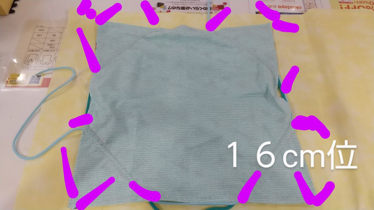 ③端から16cm位の所を縫う