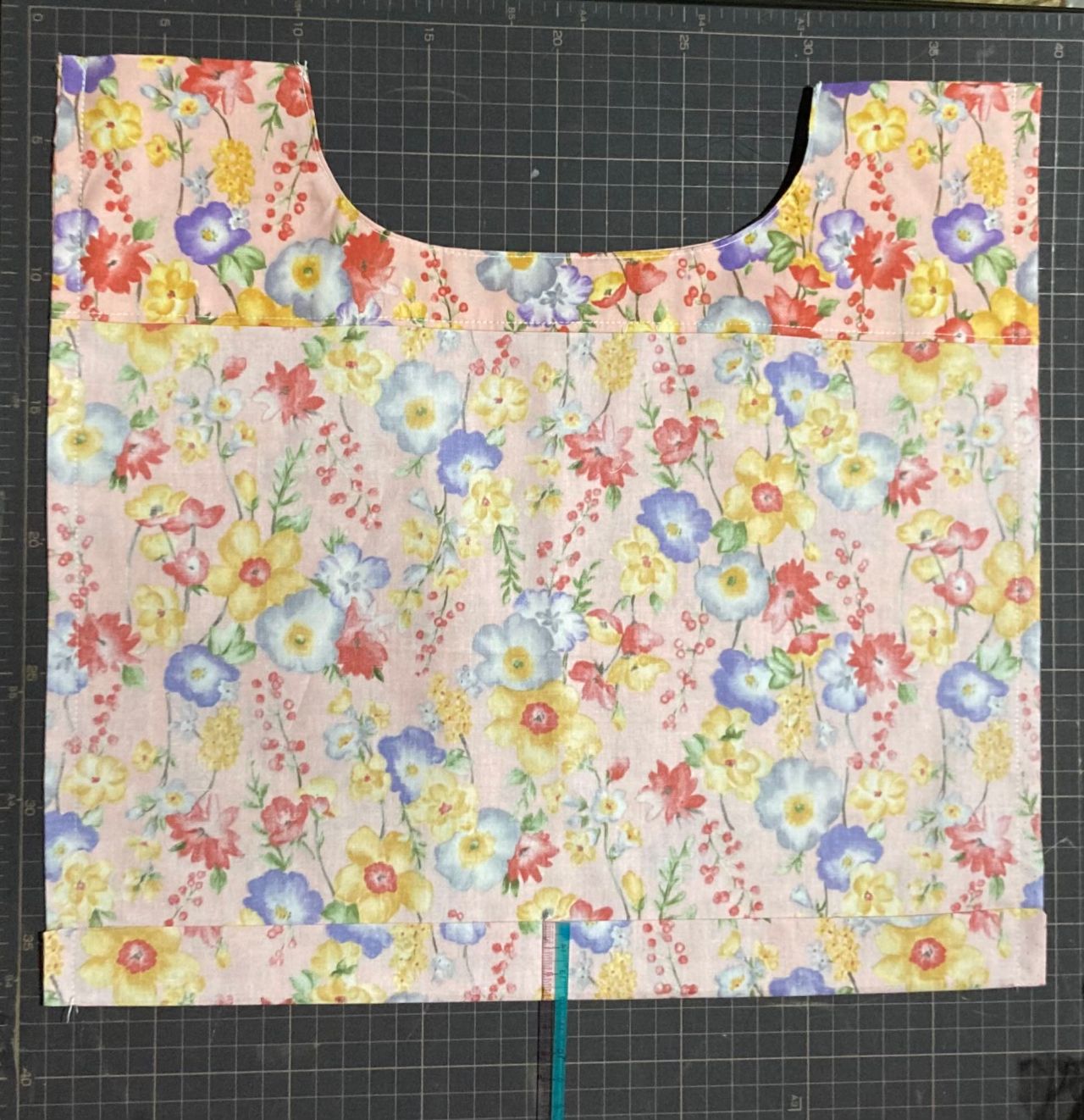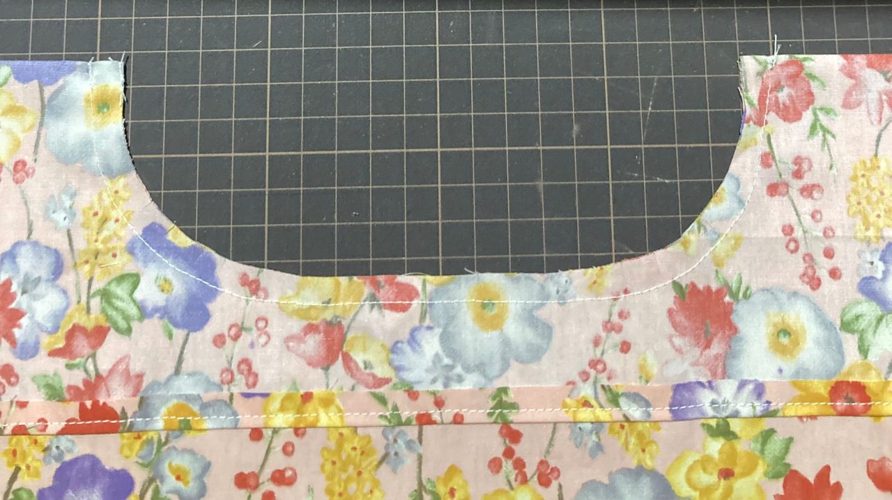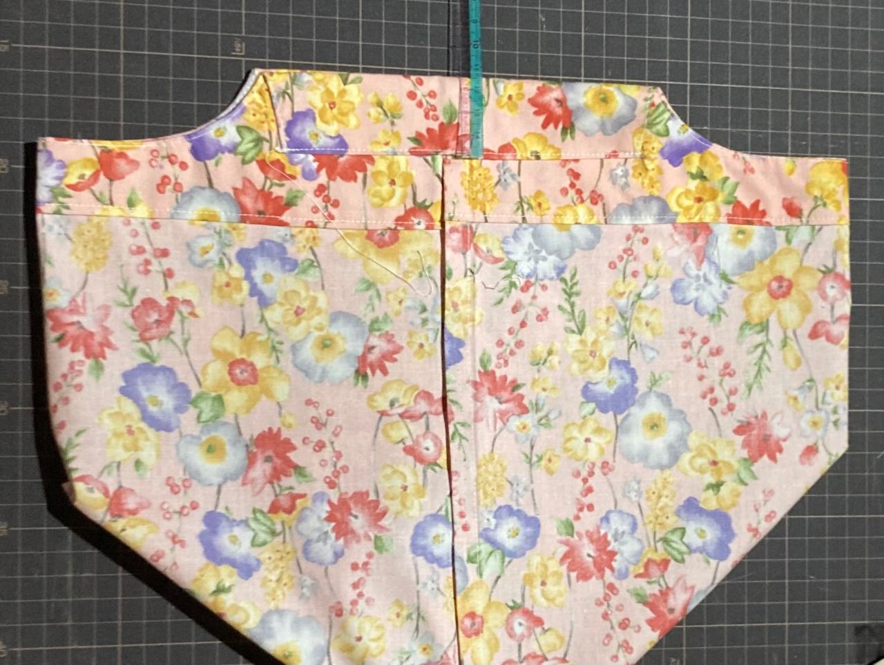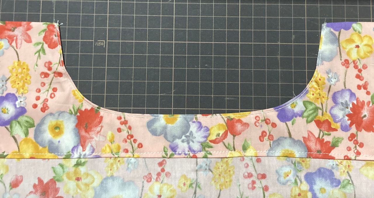 ⑧縫い代を合わせて広げます。上から7cmに線を引き折りあげ(3.5センチ巾になります)