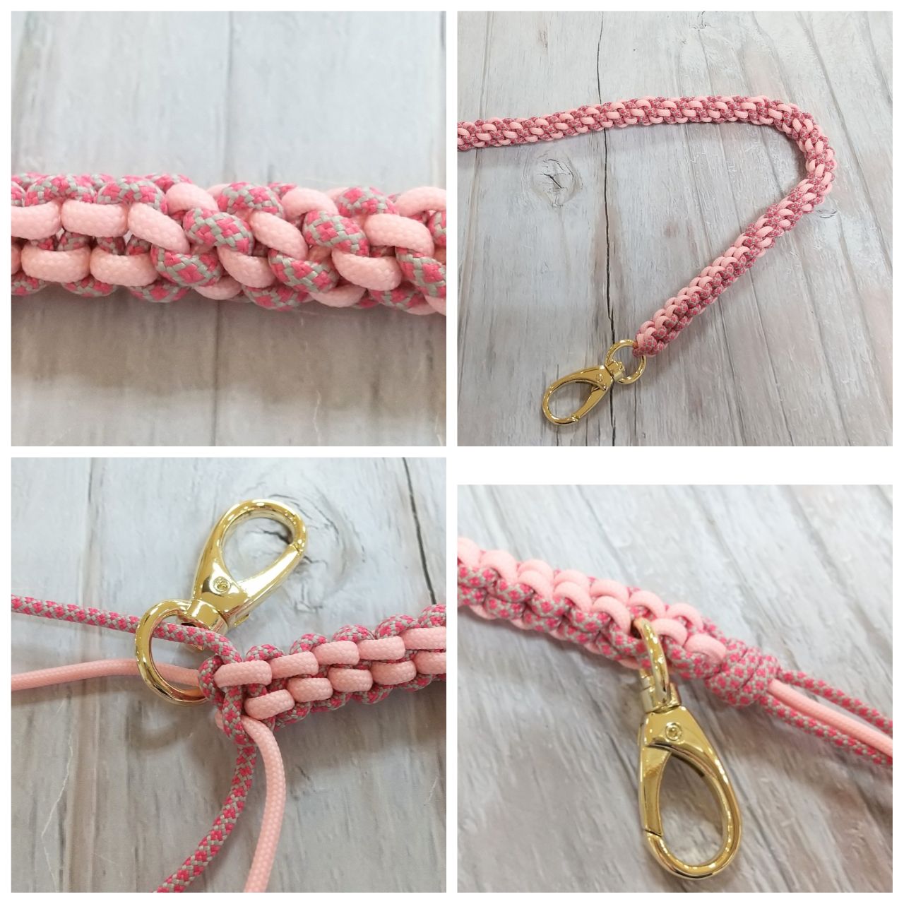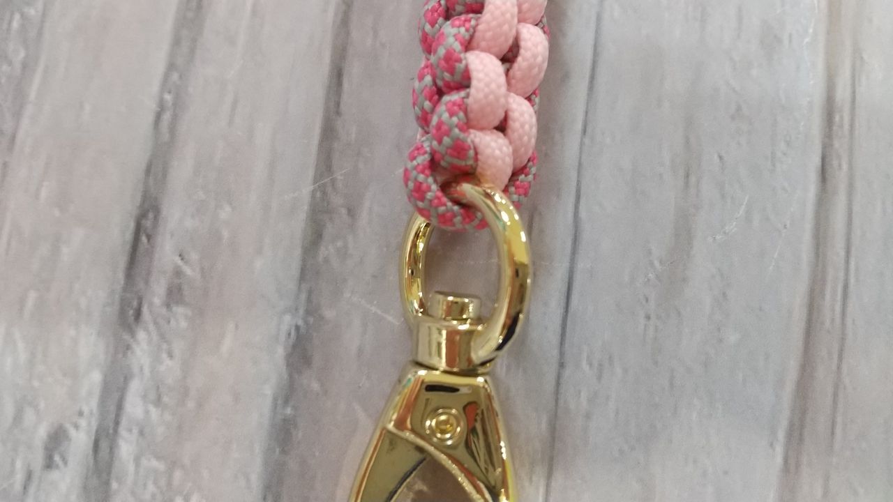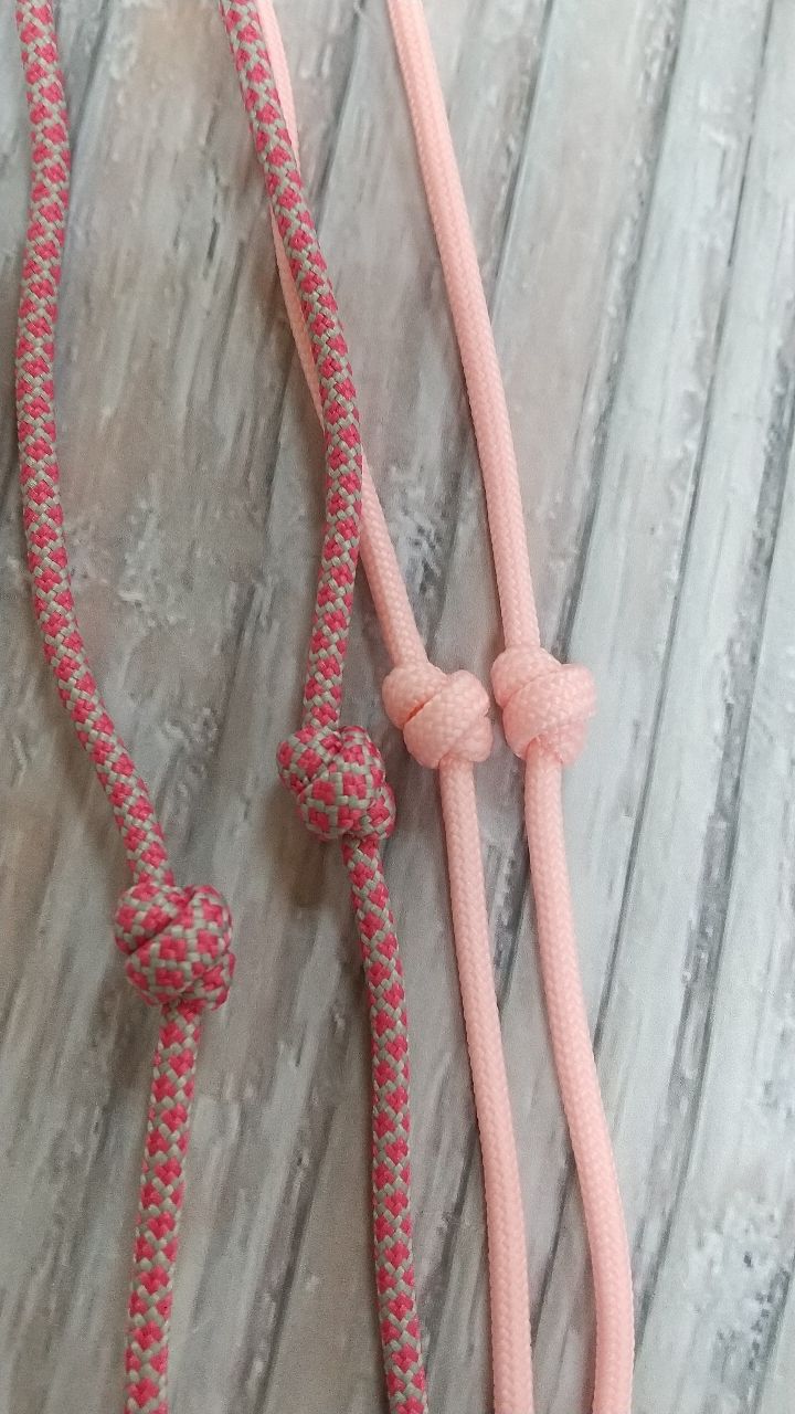 スナップフックにアウトドアコードを通して最初は「角四つだたみ」で編みます