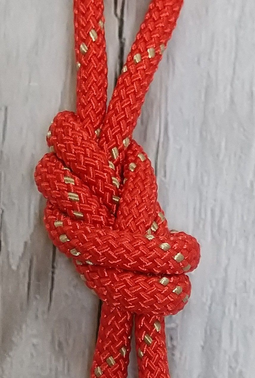 中心で二つ折りし、2本取りで8の字結び(縦)