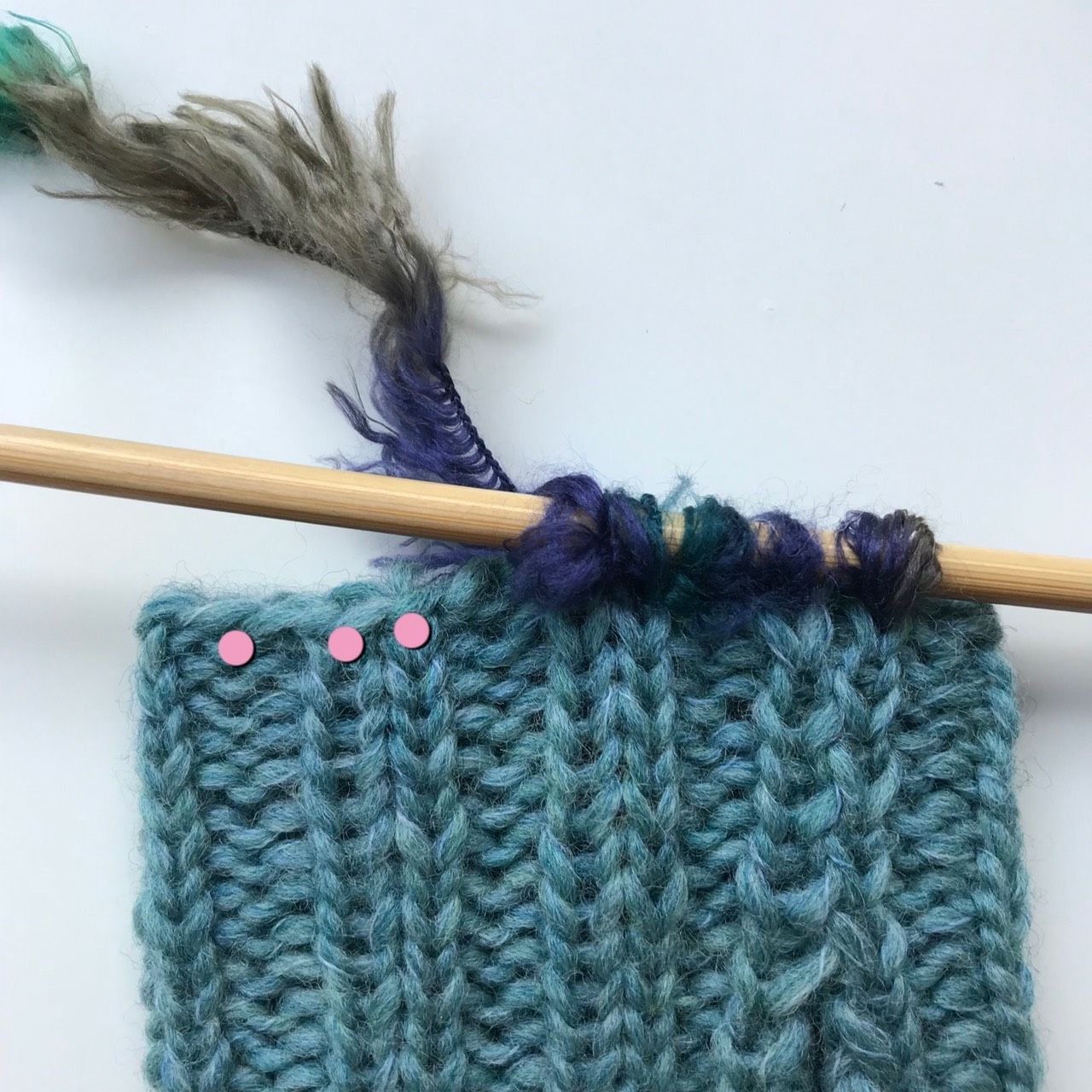 10号4本針にかえて拾い目をします(34目→24目に減らす)