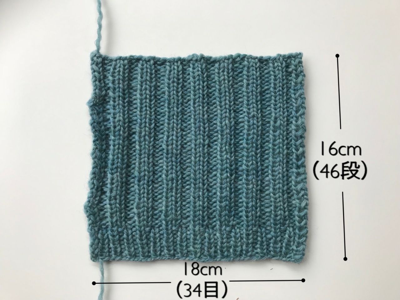 そのまま続けて2目ゴム編みにし38段編んだら伏せ止めにします