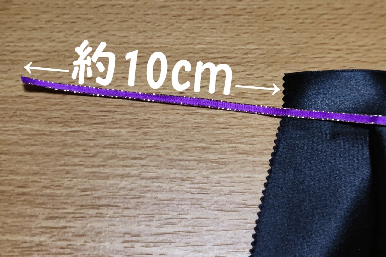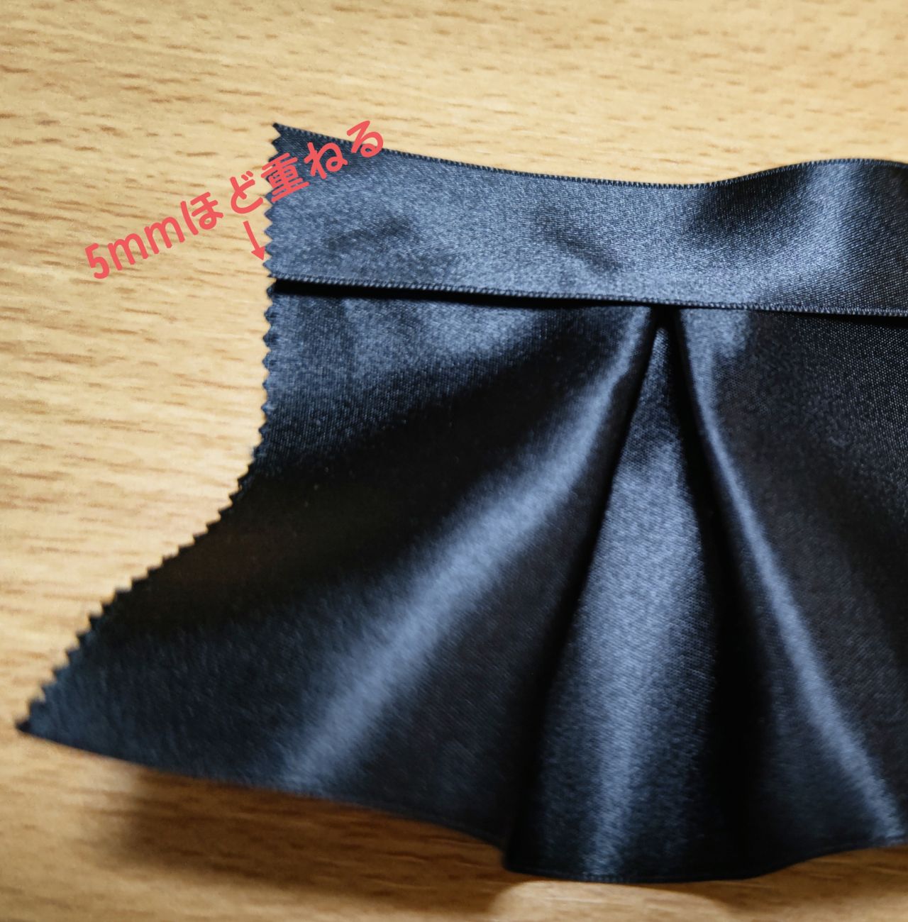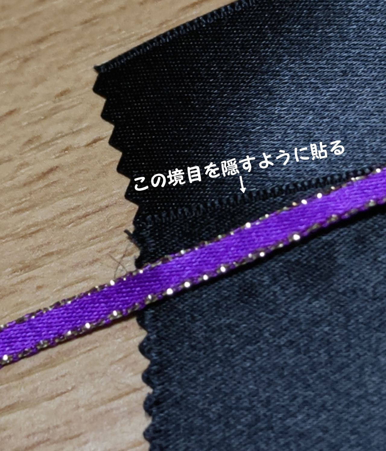 ③襟にするリボンを本体のリボンに約5mmくらい重ねて同じ長さ貼り付ける