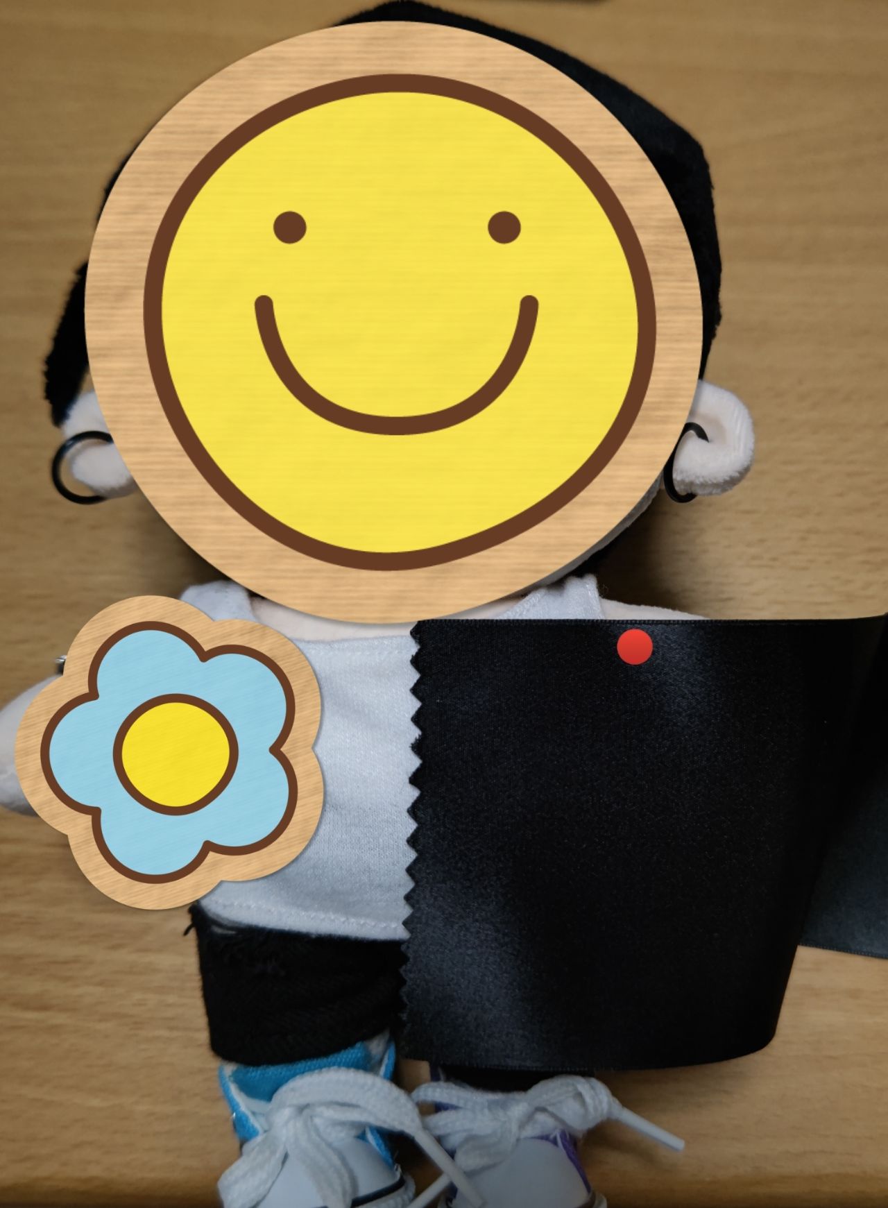 ④マントを結ぶ分の長さ(約10cm)を残して本体と襟を接着した境目を隠すように、貼ったら完成☆