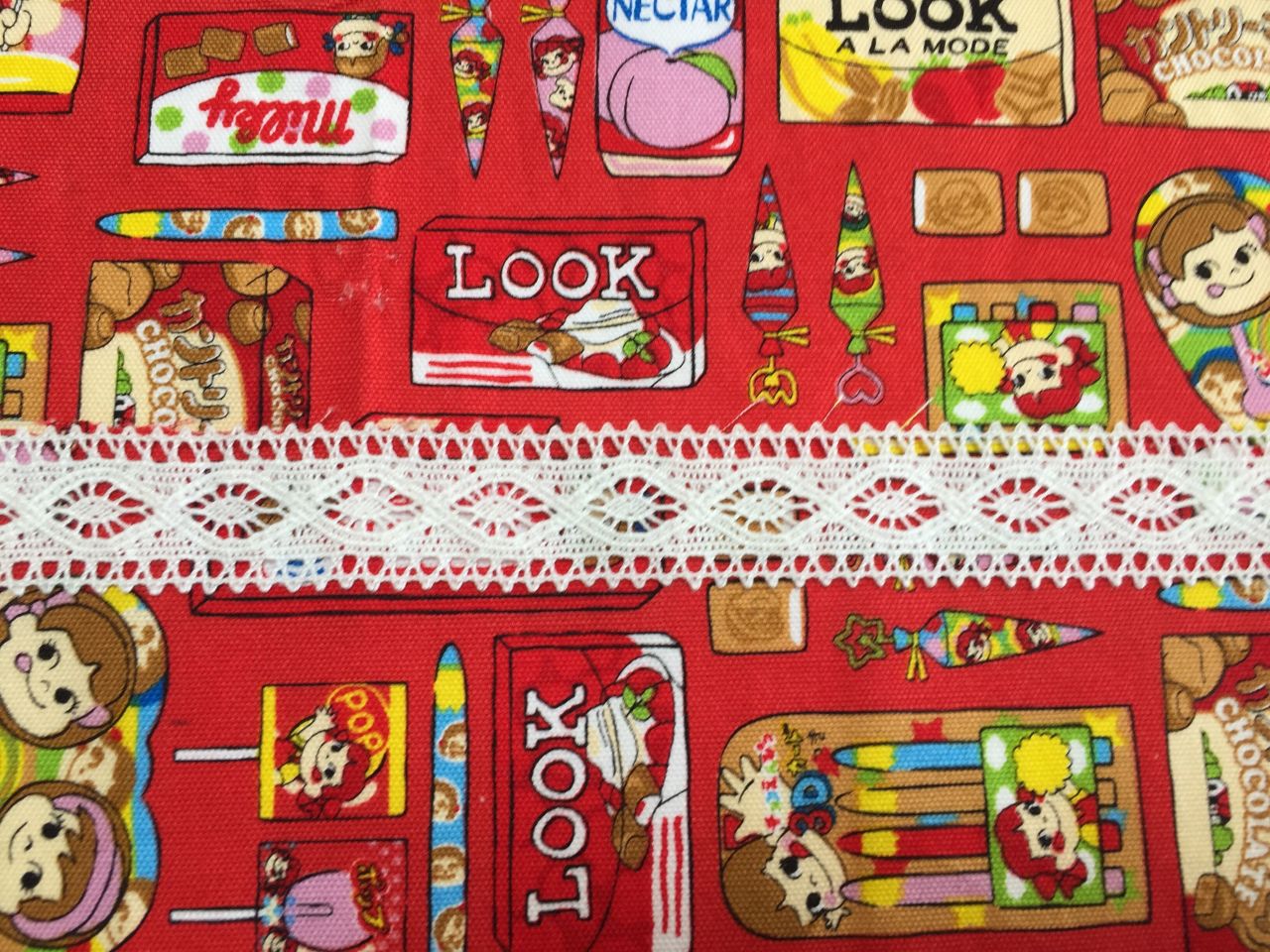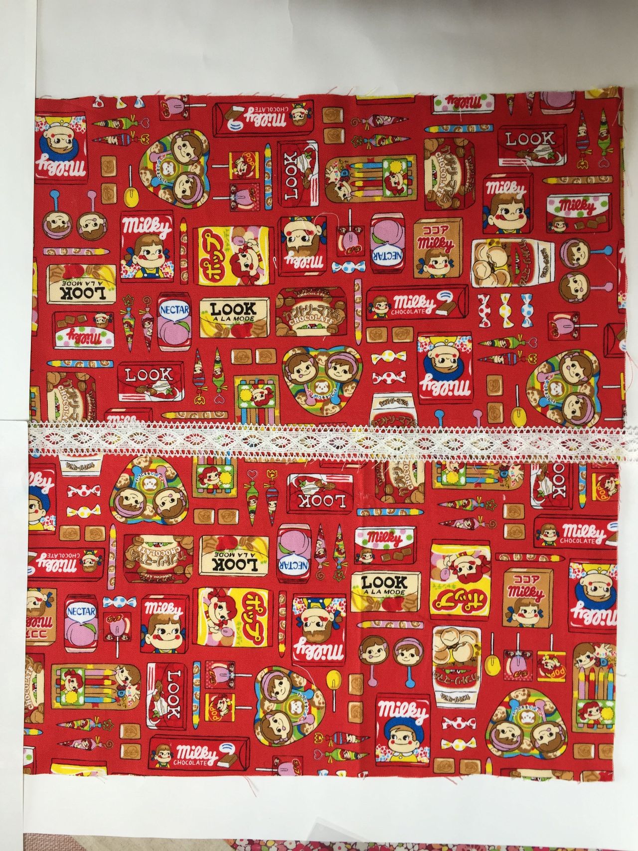 残りの生地をつぎはぎして縫い代をレースなどで隠してランチョンマットを作りました。