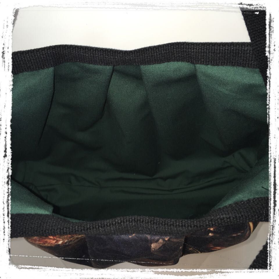 裏地は深緑、縁のテープは黒と落ち着いた色でまとめたので、大人の方が持っても素敵ですね(*´ω`*)