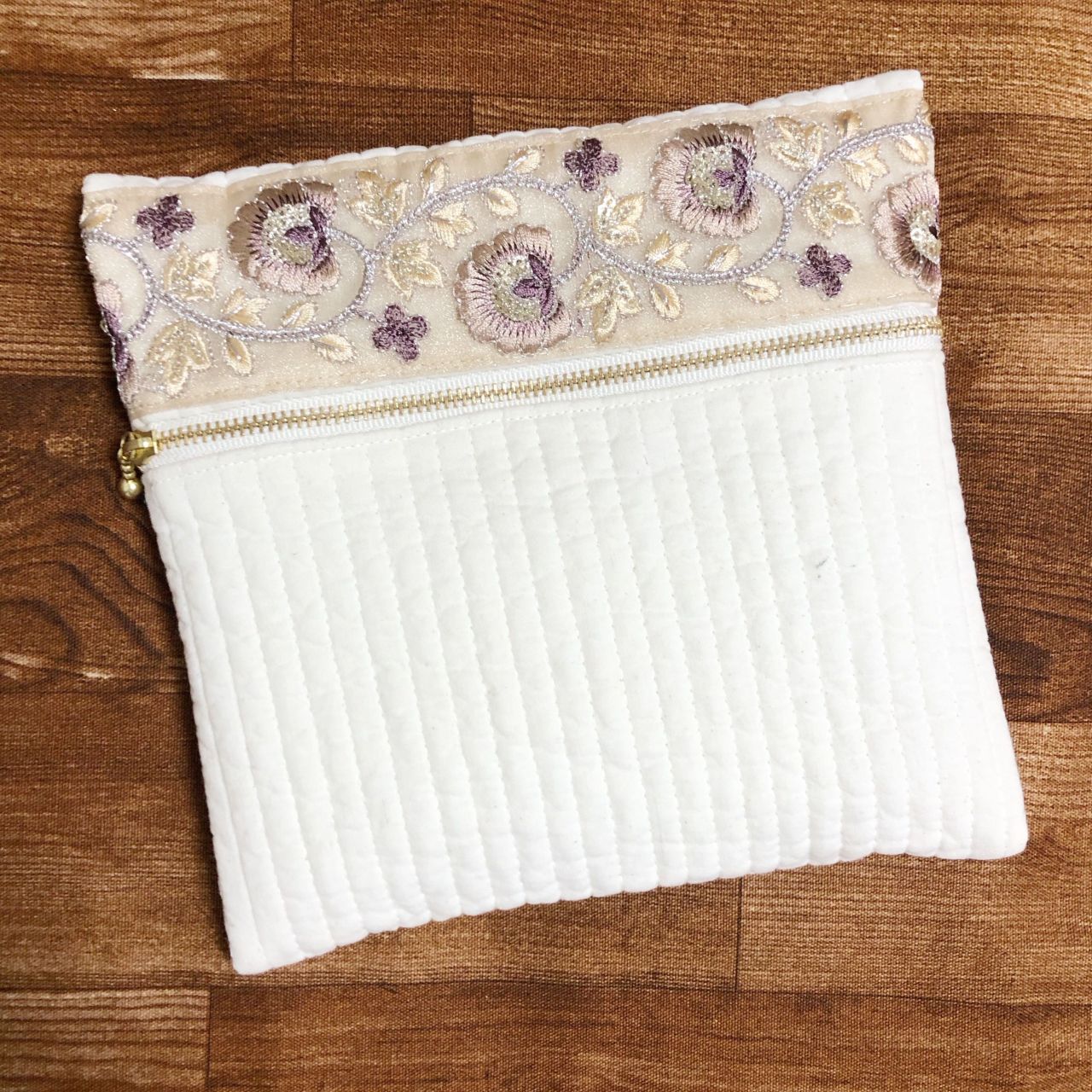 ヌビキルト✖︎インド刺繍リボンで簡単フラットポーチ