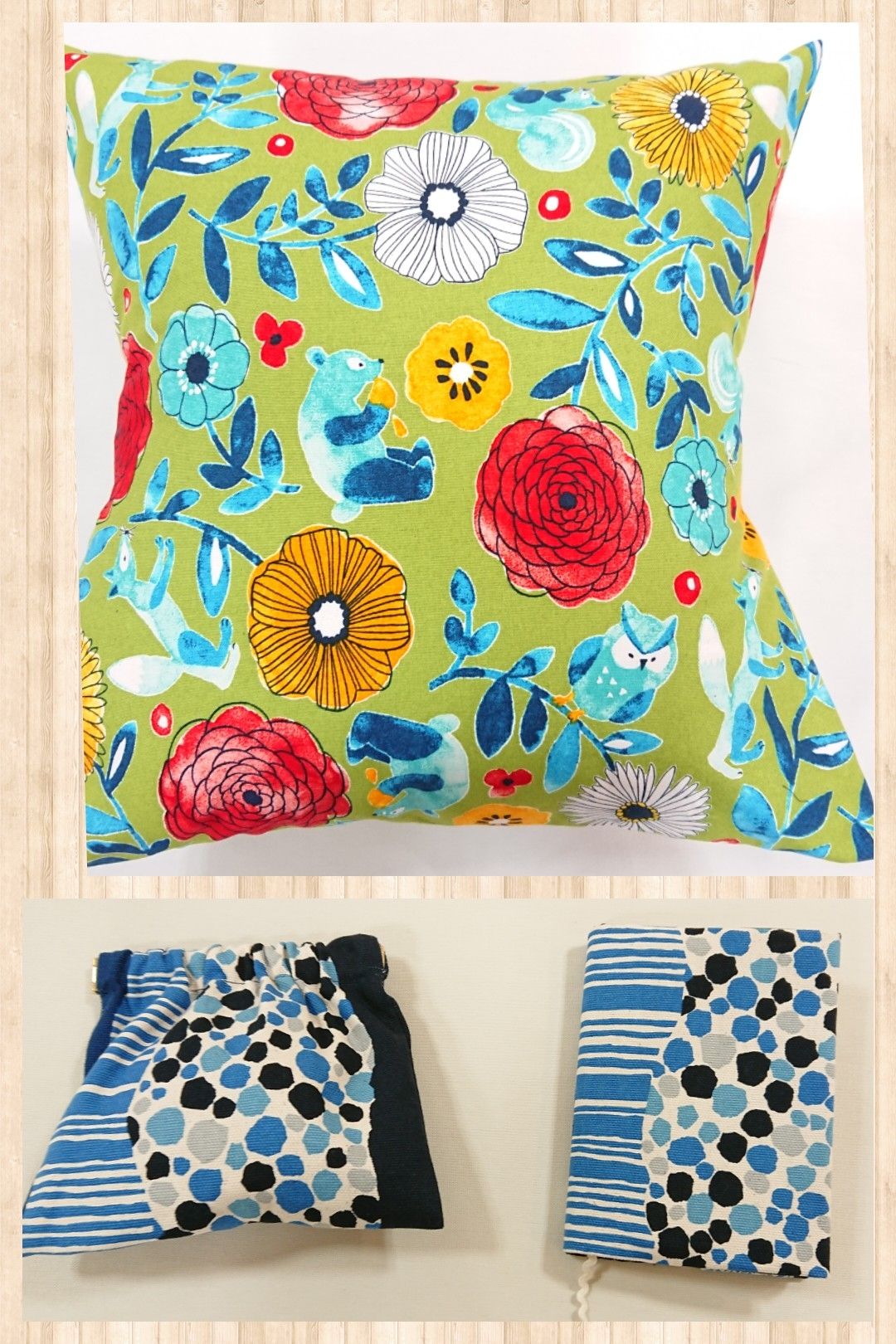 北欧柄で、クッションカバー、バネ口ポーチとブックカバーを作ってみました!