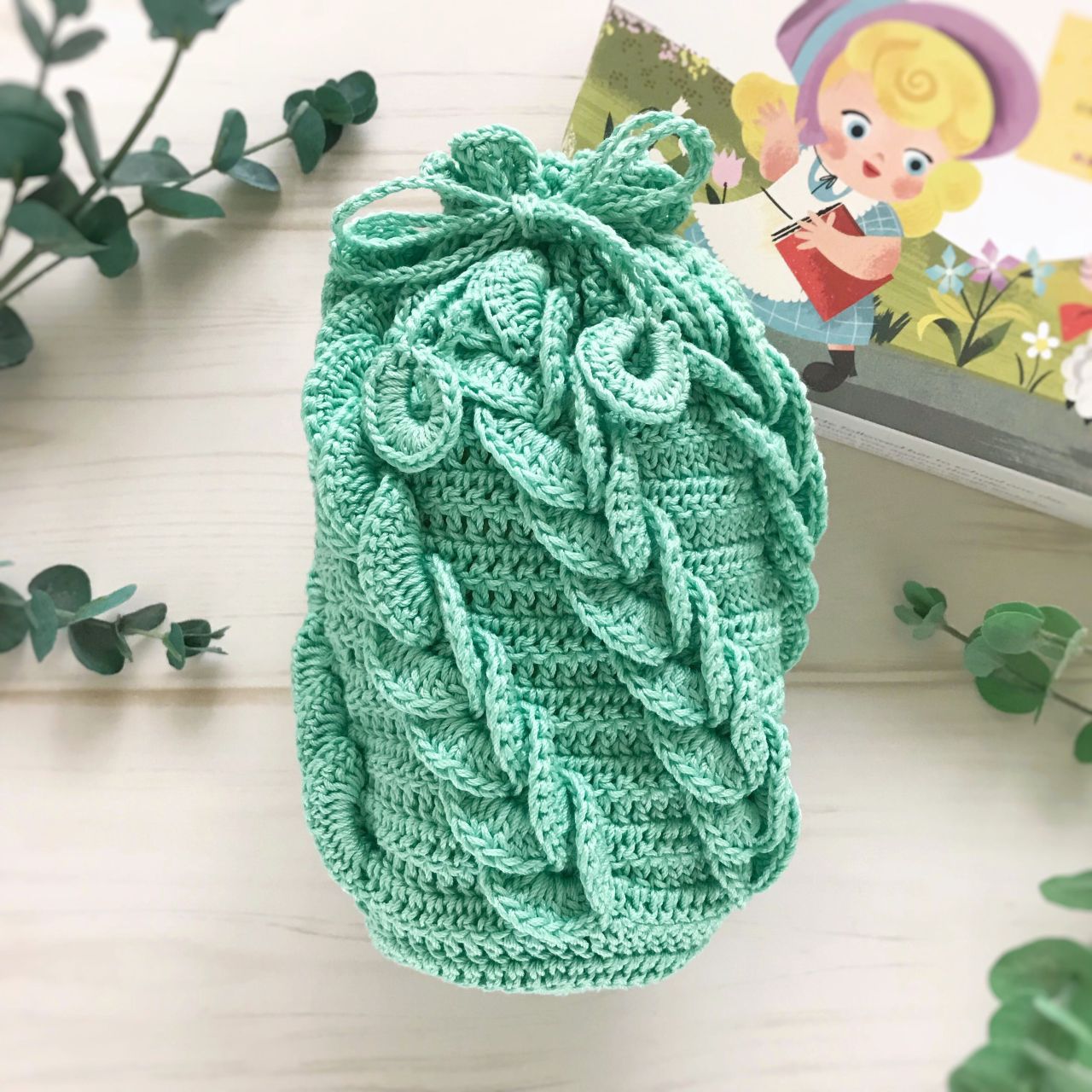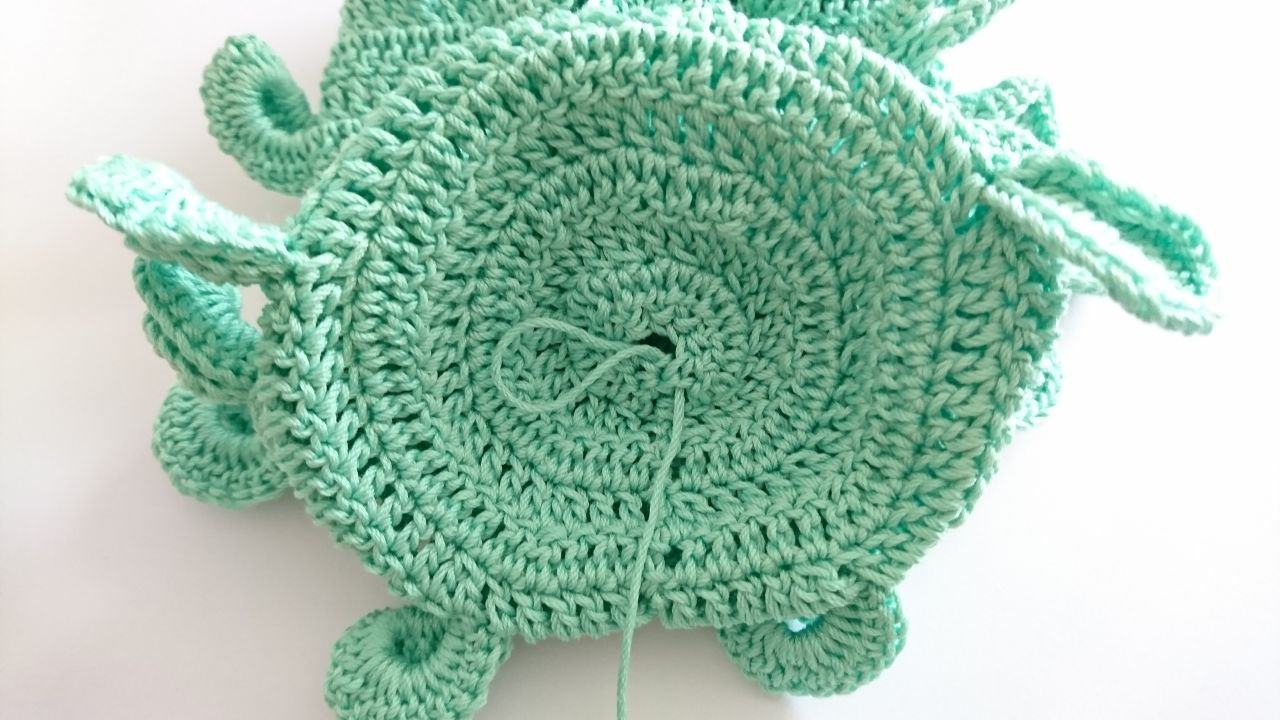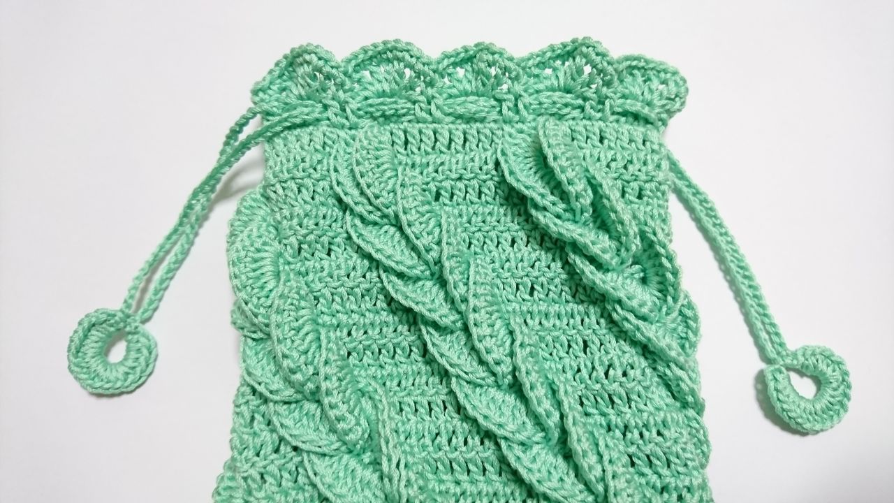 21段からは減らし目をし、最後の10目を糸を通し絞ります