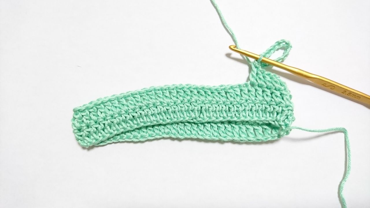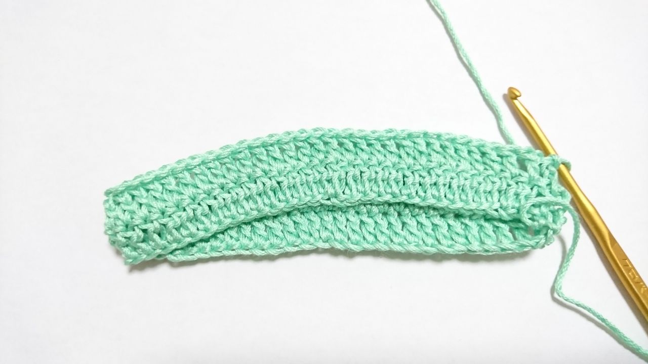 ☆Point 1段目は進行方向、2段目は戻り方向で長編みを2段編みます
