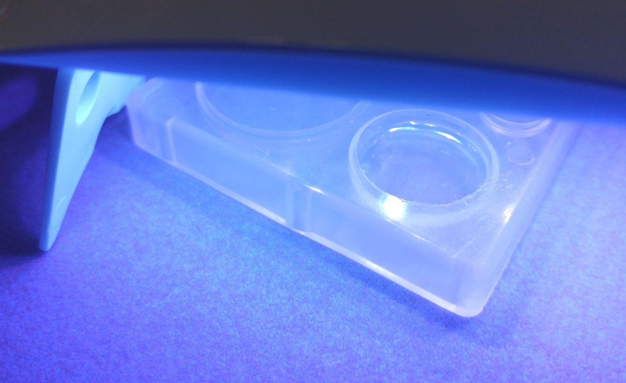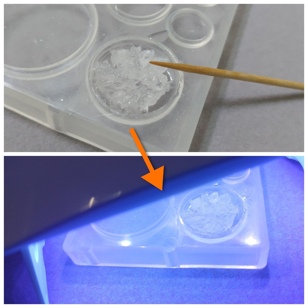 ③枠いっぱいにレジン液を入れて硬化する