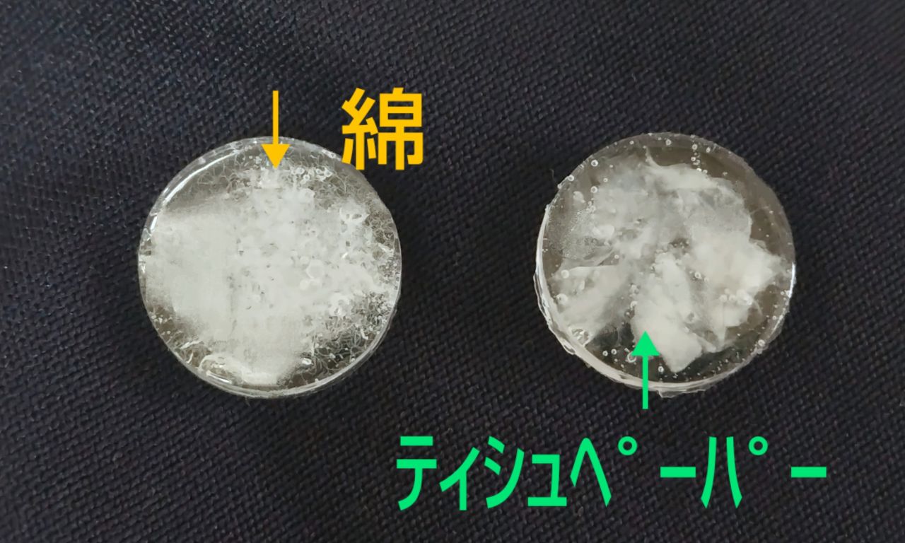 ②綿(又はティッシュペーパー)を細かくちぎって①に