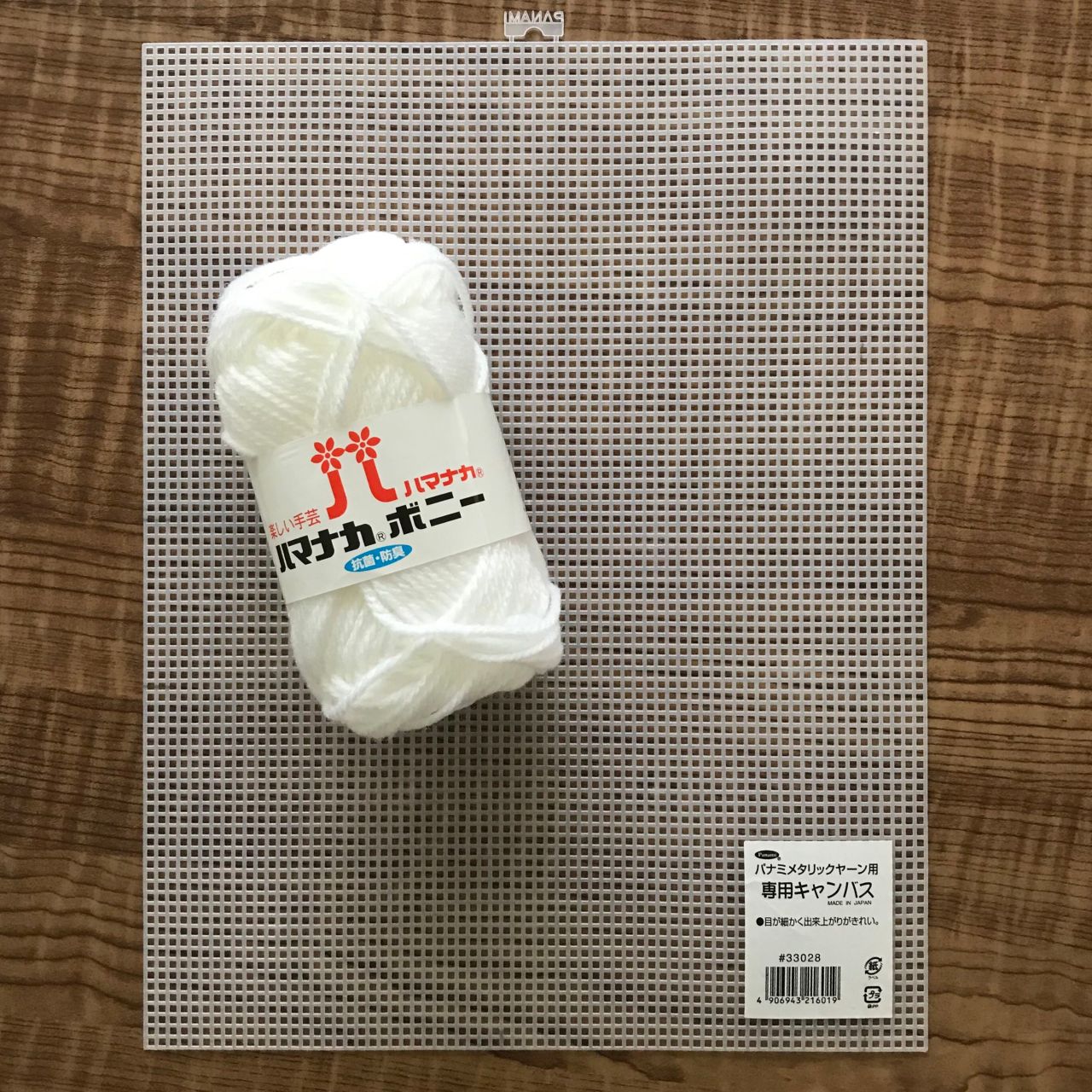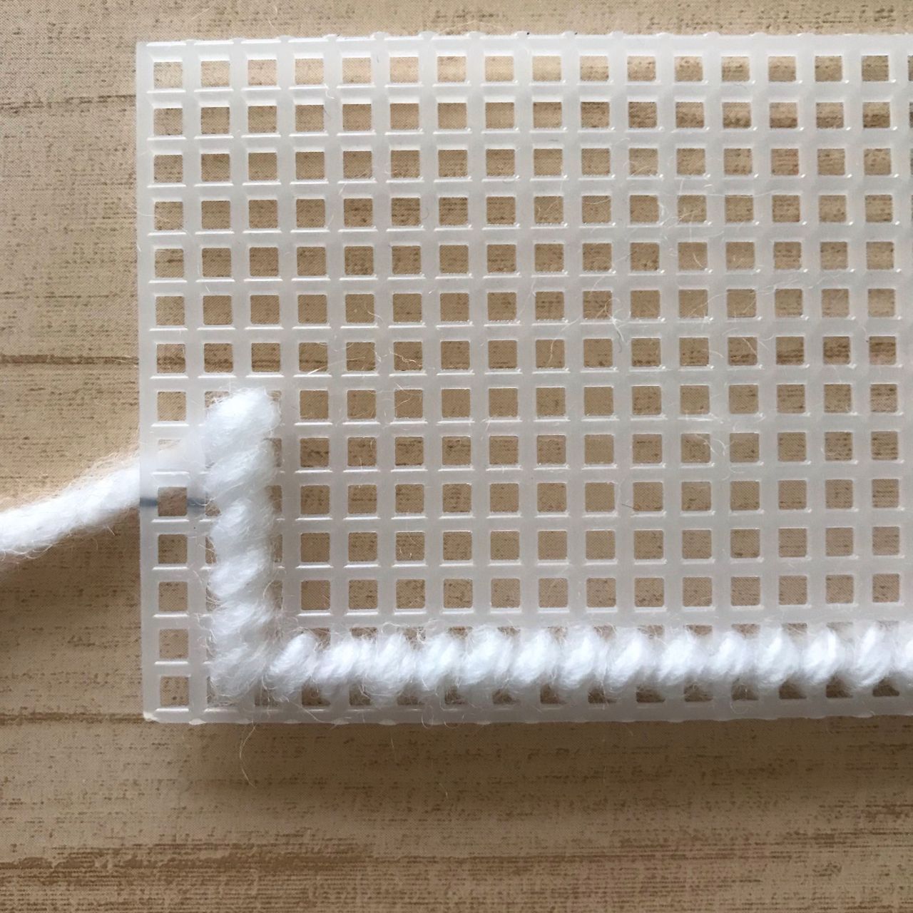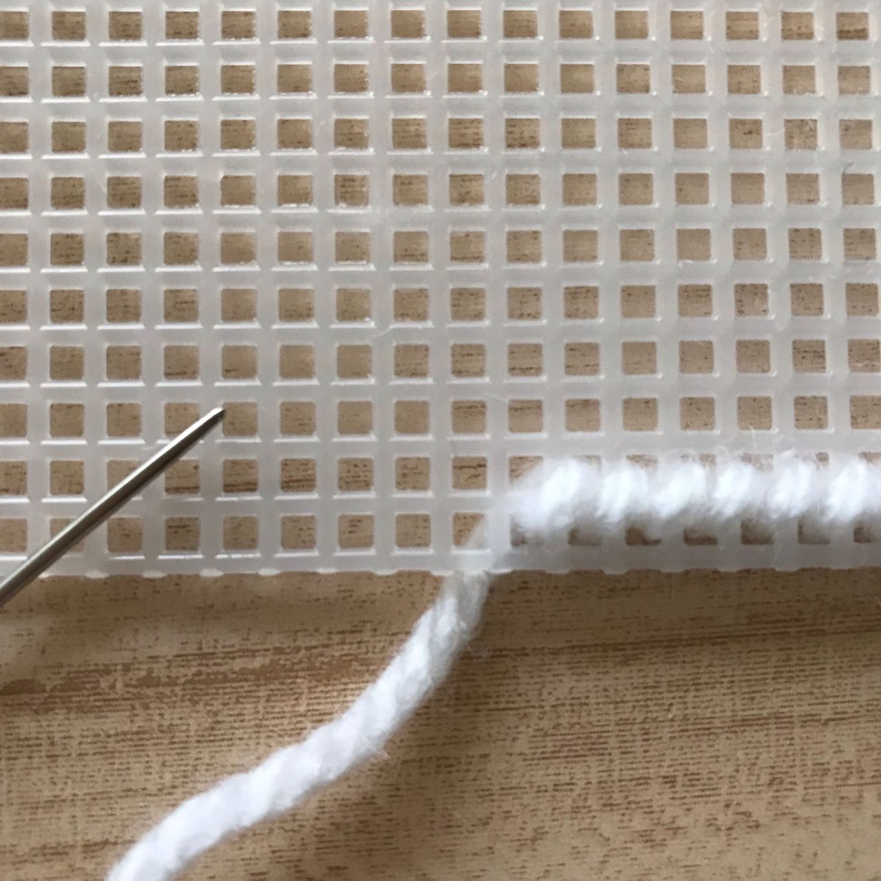 キャンバスネットに 毛糸をとじ針で刺せば出来上がり!