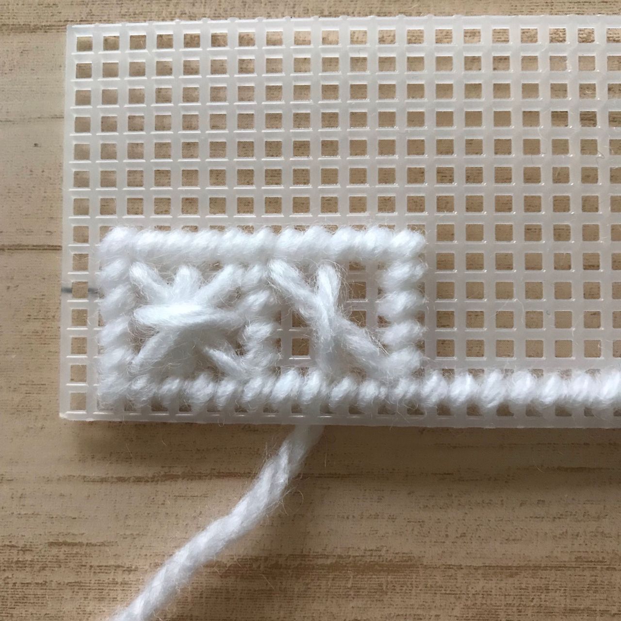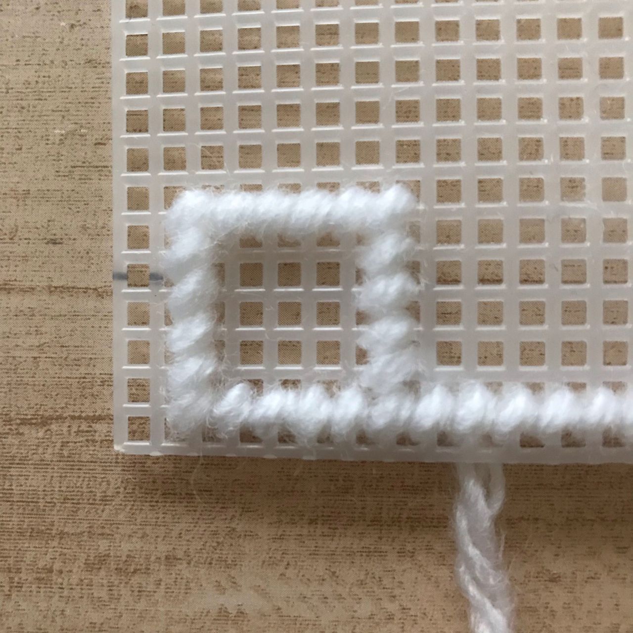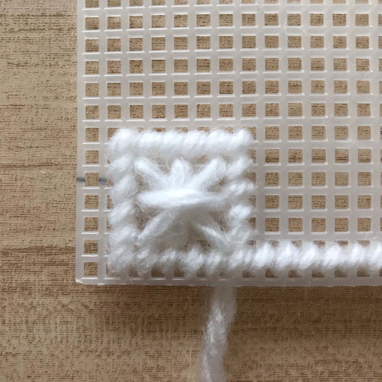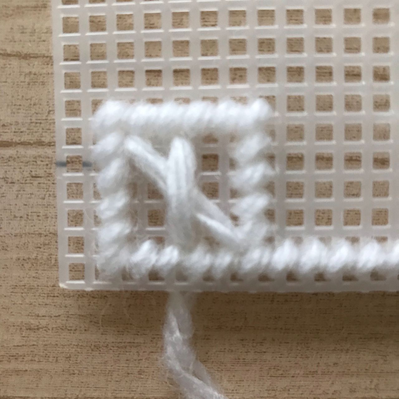 キャンバスネットに 毛糸をとじ針で刺せば出来上がり!
