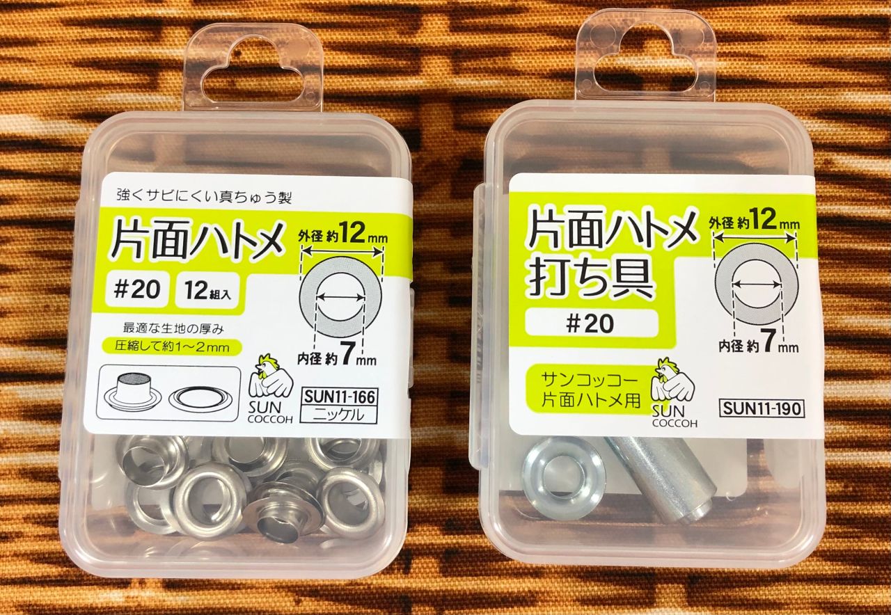⚫︎ハトメ用の穴を直径約7mm、2ヶ所あける