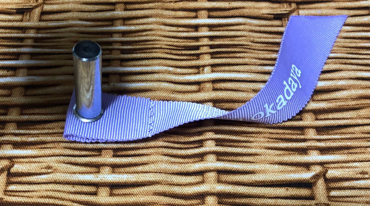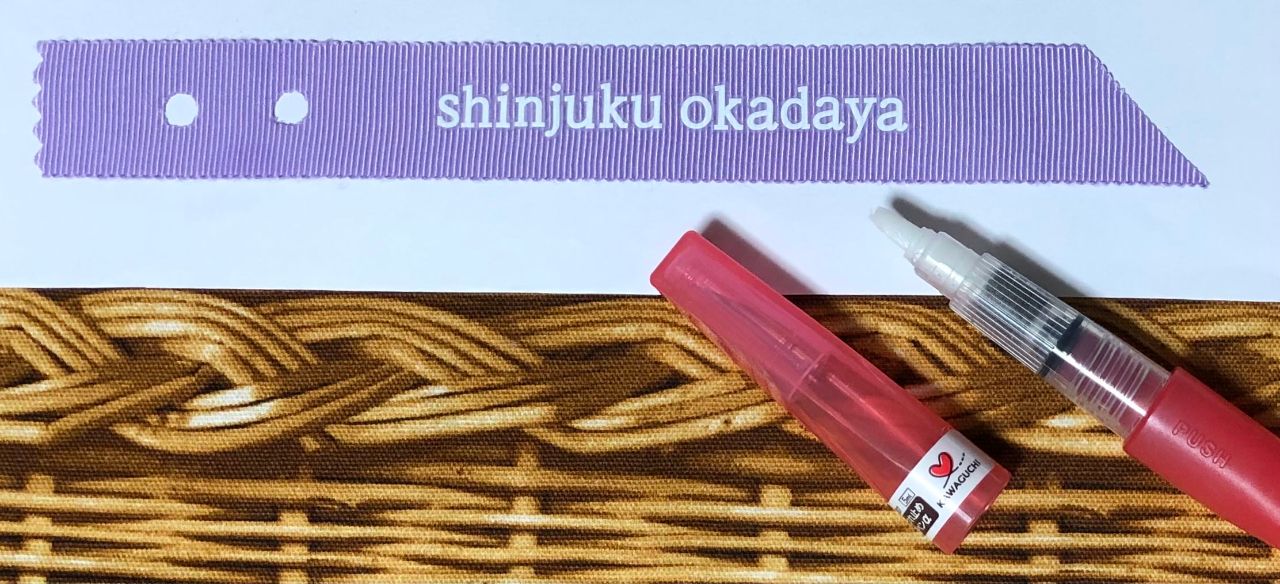 ⚫︎ リボン右端とハトメ穴のほつれ防止のため、ほつれ止め液を塗る