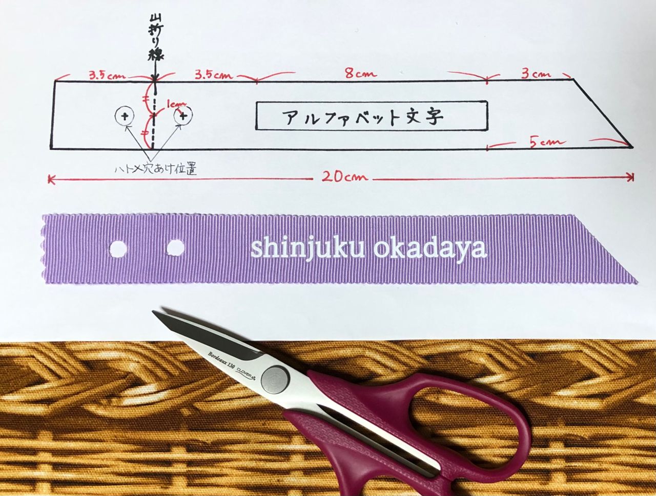 (左端はピンキングバサミでカット済み)