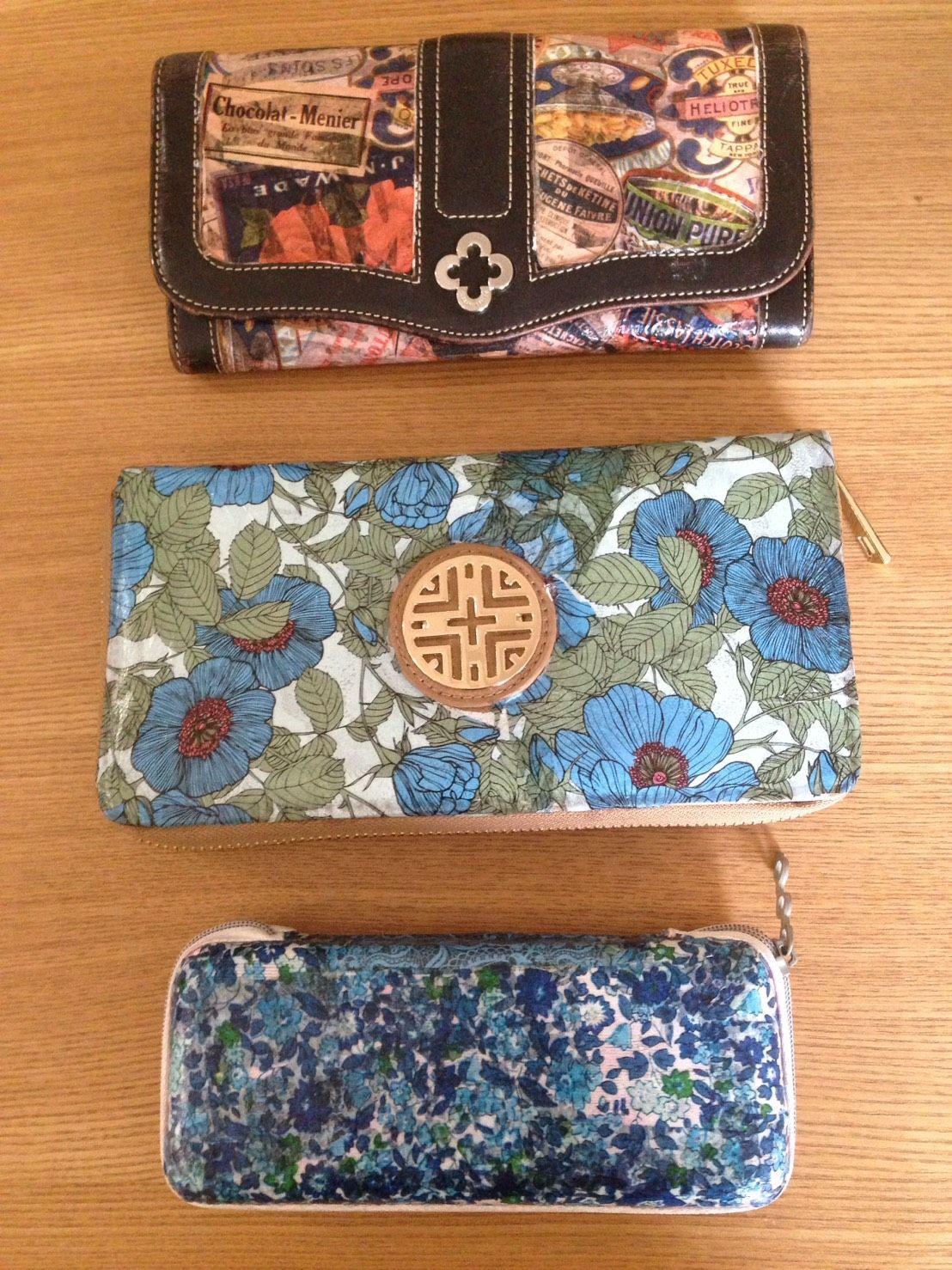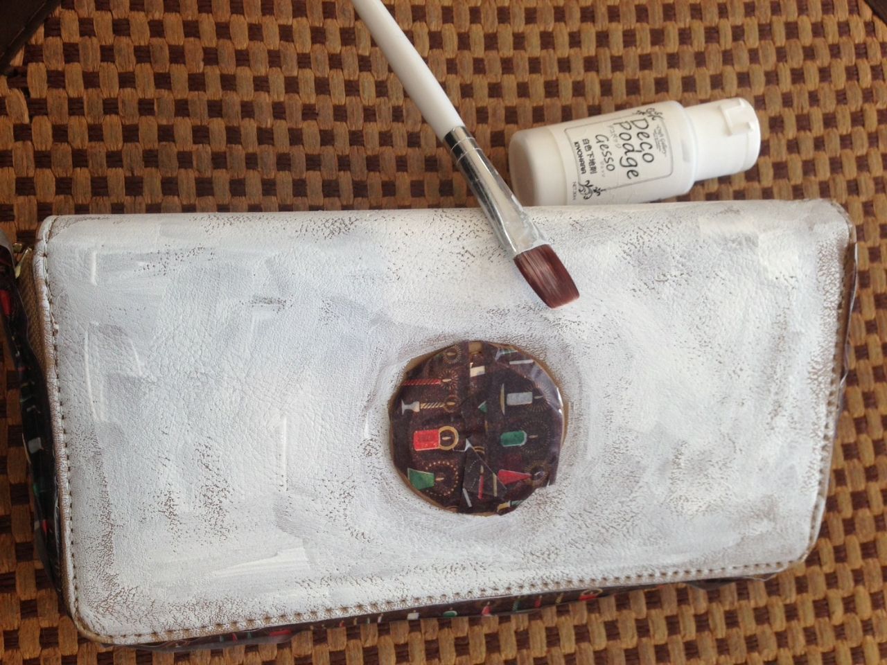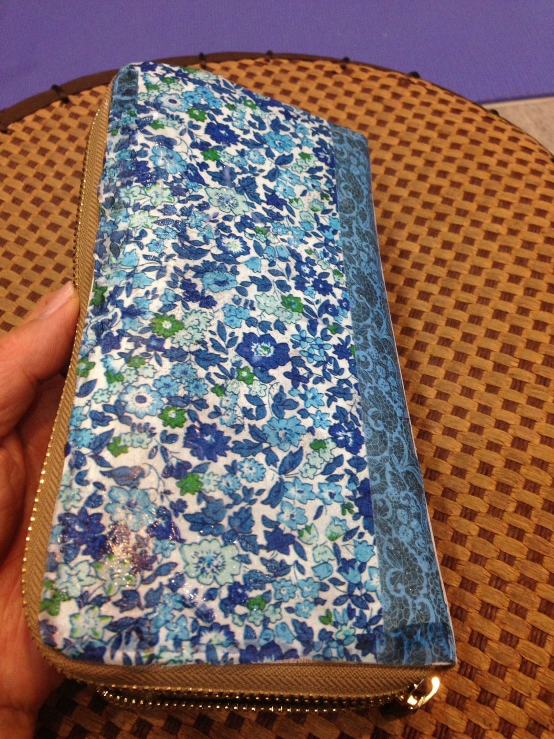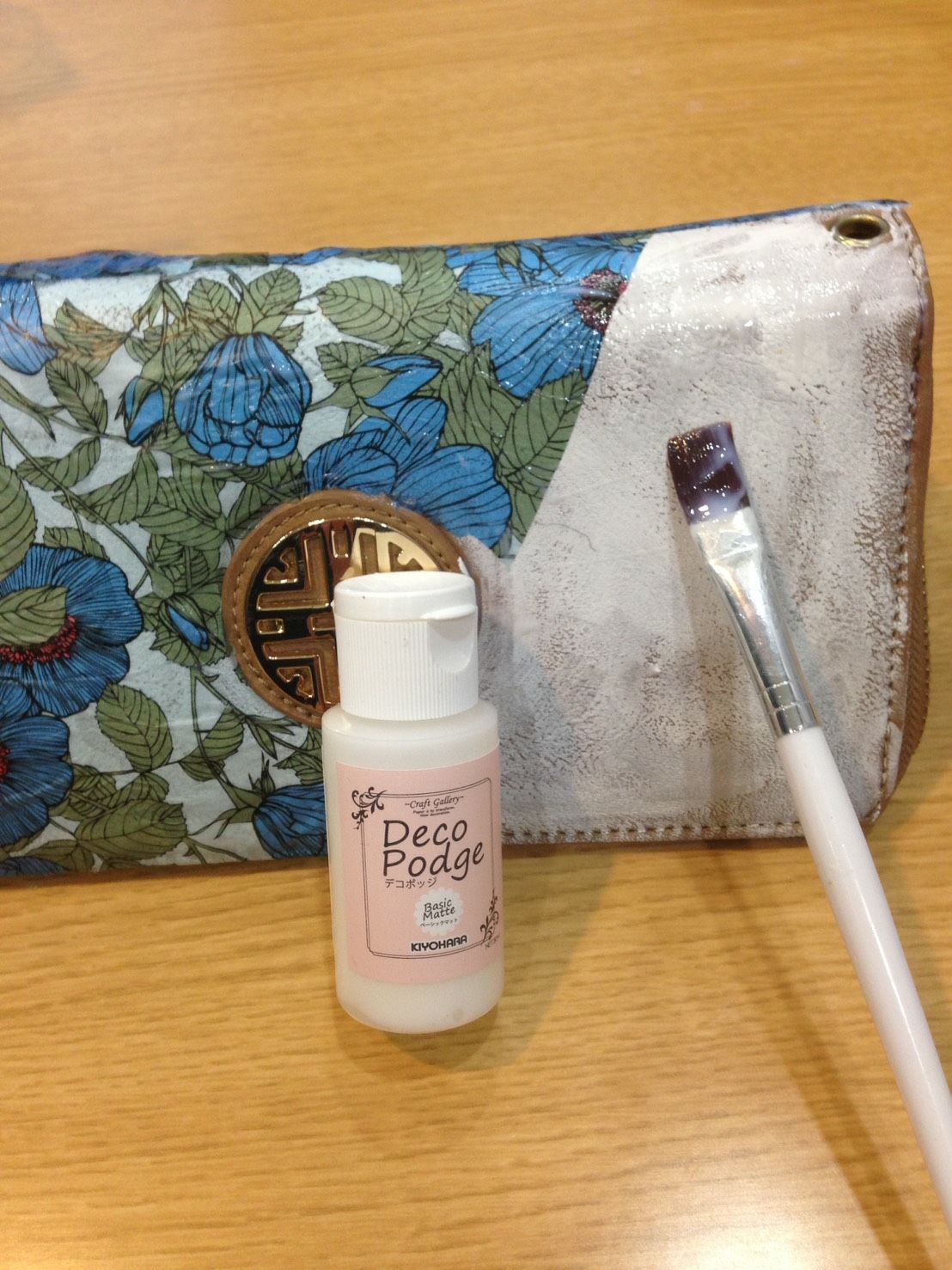 布製の財布をデコポッジします。