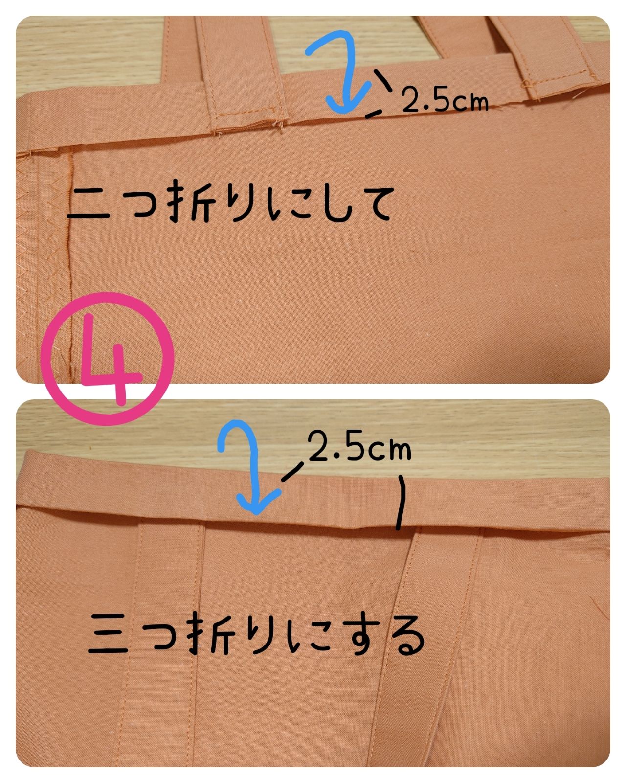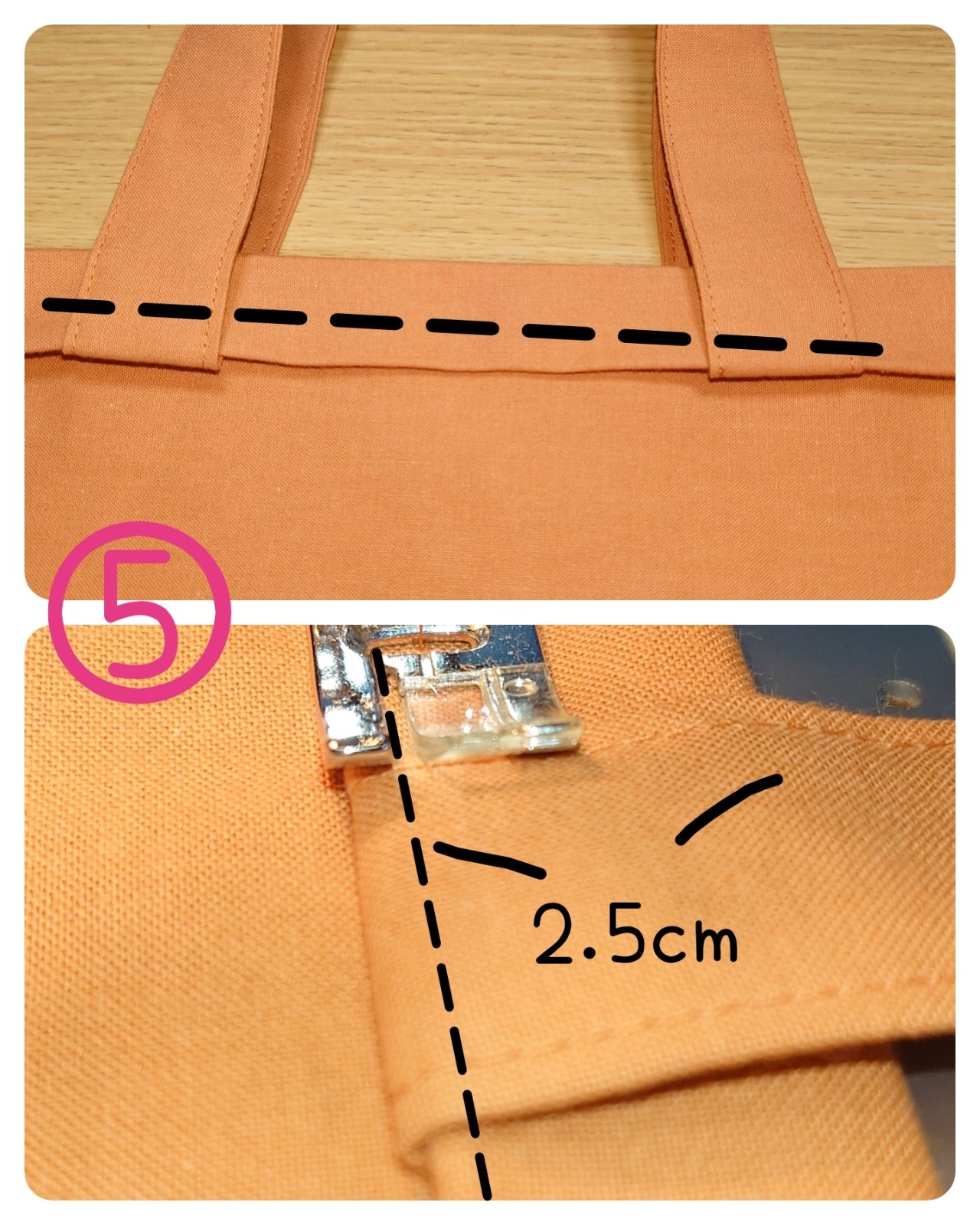 2.5cmのところを縫います(持ち手の方向に注意!)
