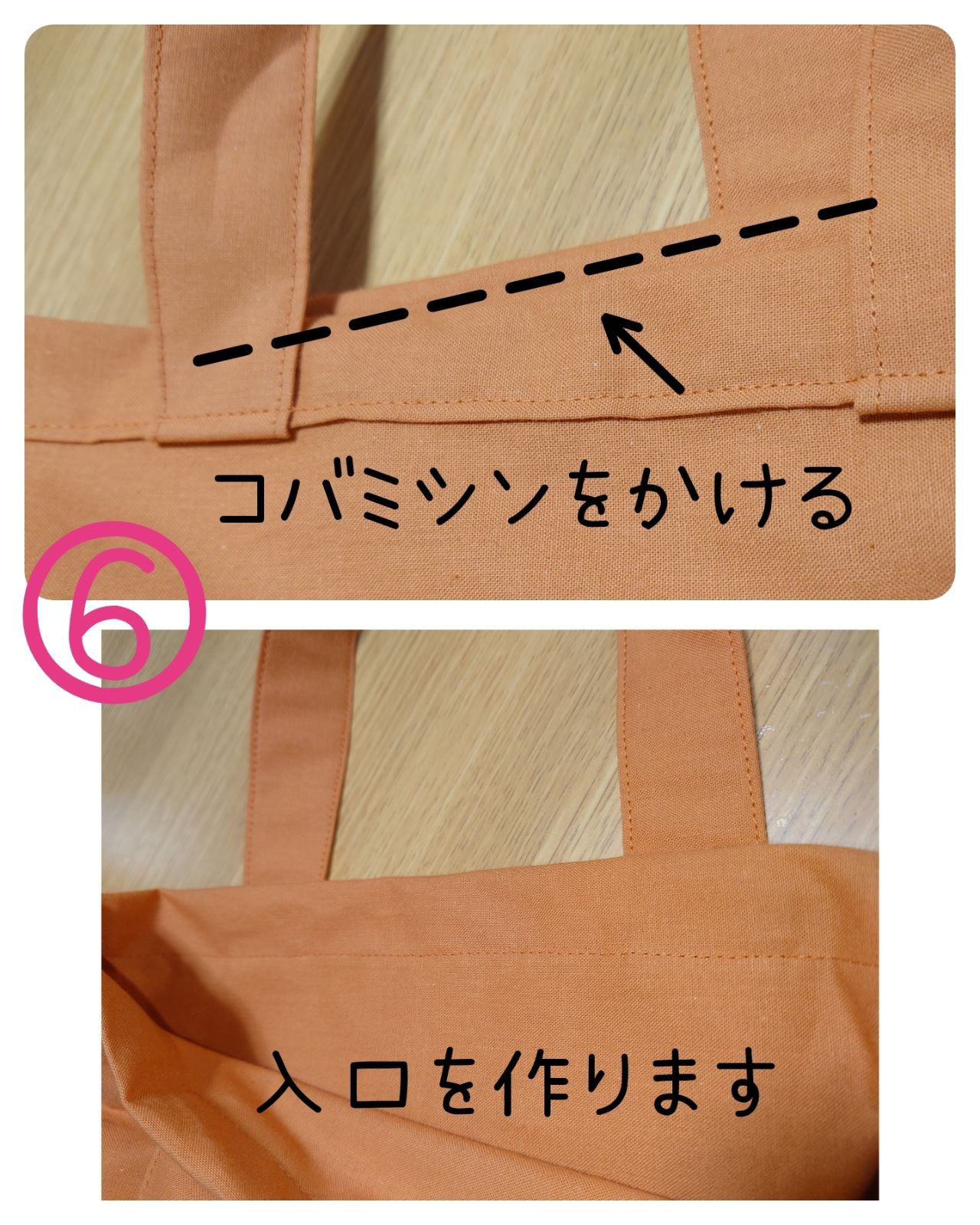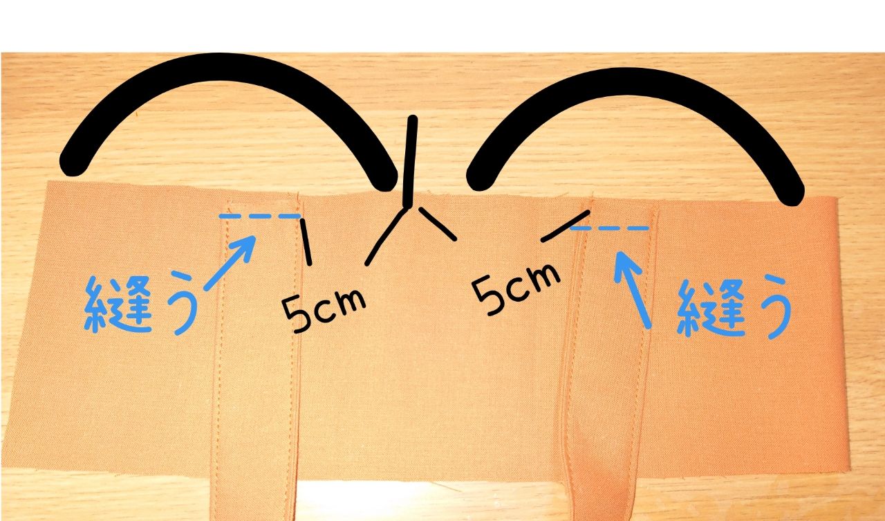 中心から5cmずつ離した所に、持ち手を縫い付けます