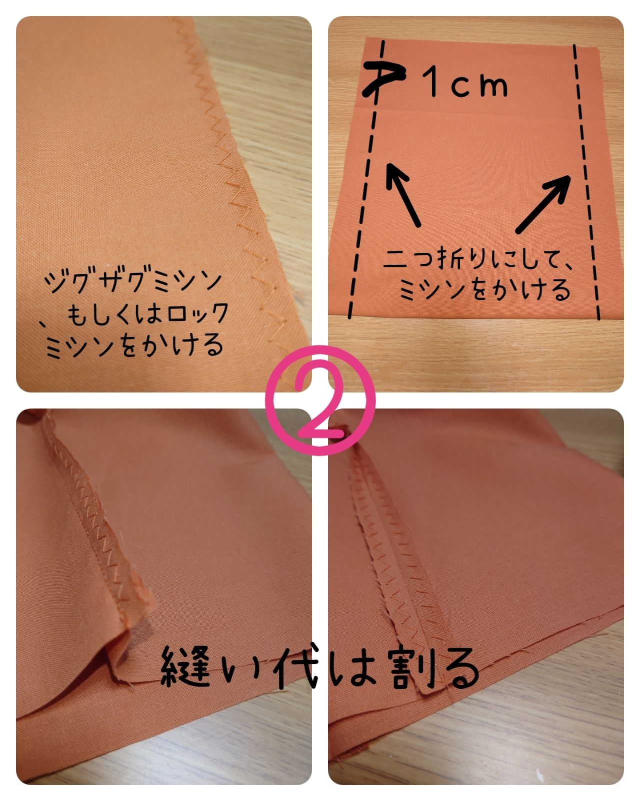 細長くなるように、四つ折りを作り、両サイドを端ミシンをかけます
