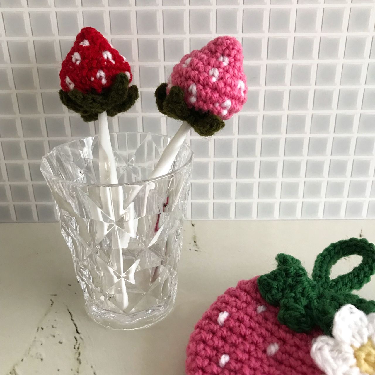 そんなイチゴつながり…今回はたわしを作りました。