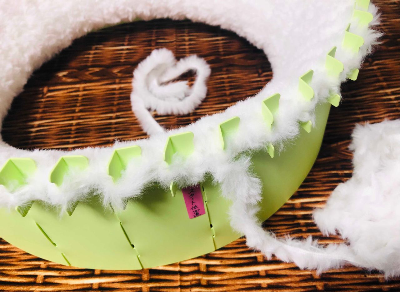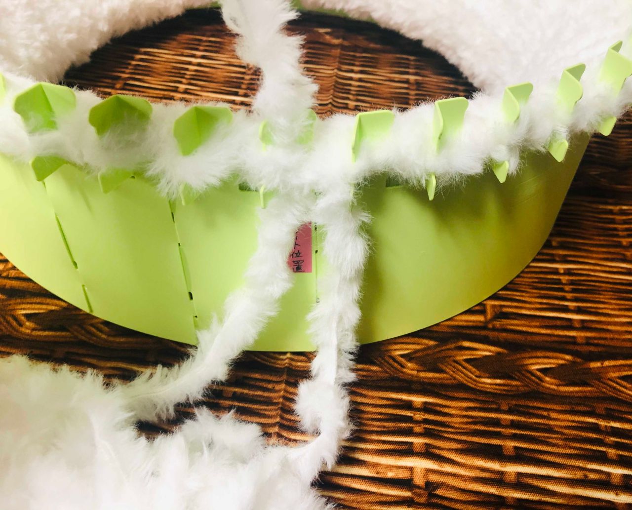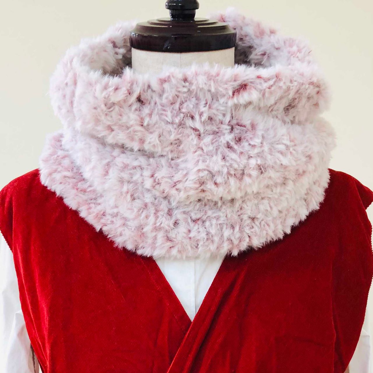 毛糸はふわふわで肌触りの良い『ルビーエコファー』を使用。