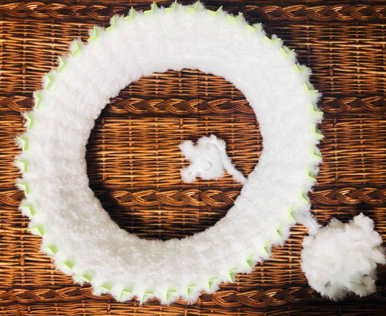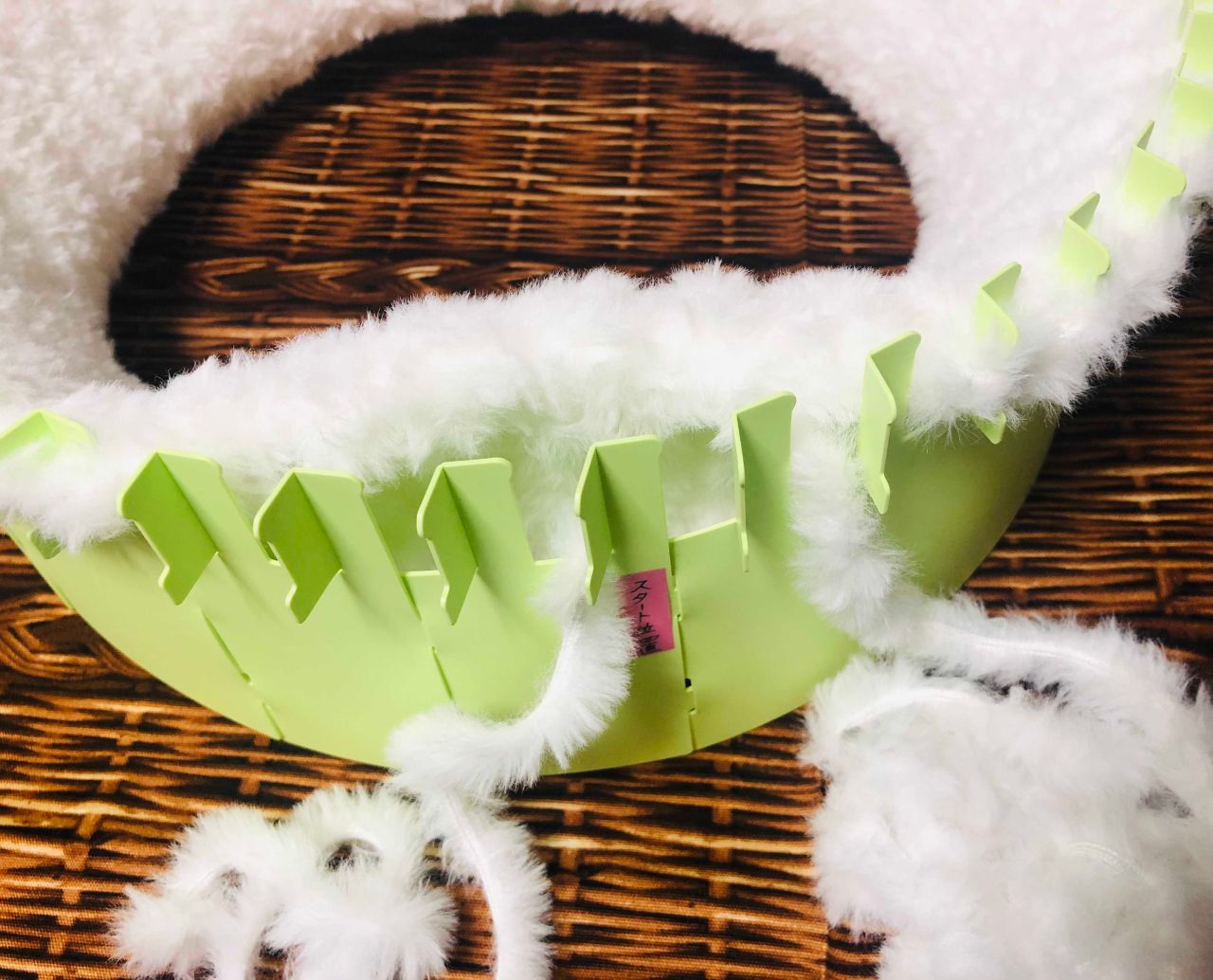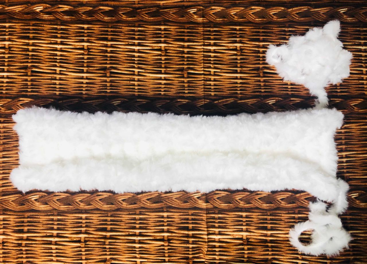 毛糸はふわふわで肌触りの良い『ルビーエコファー』を使用。