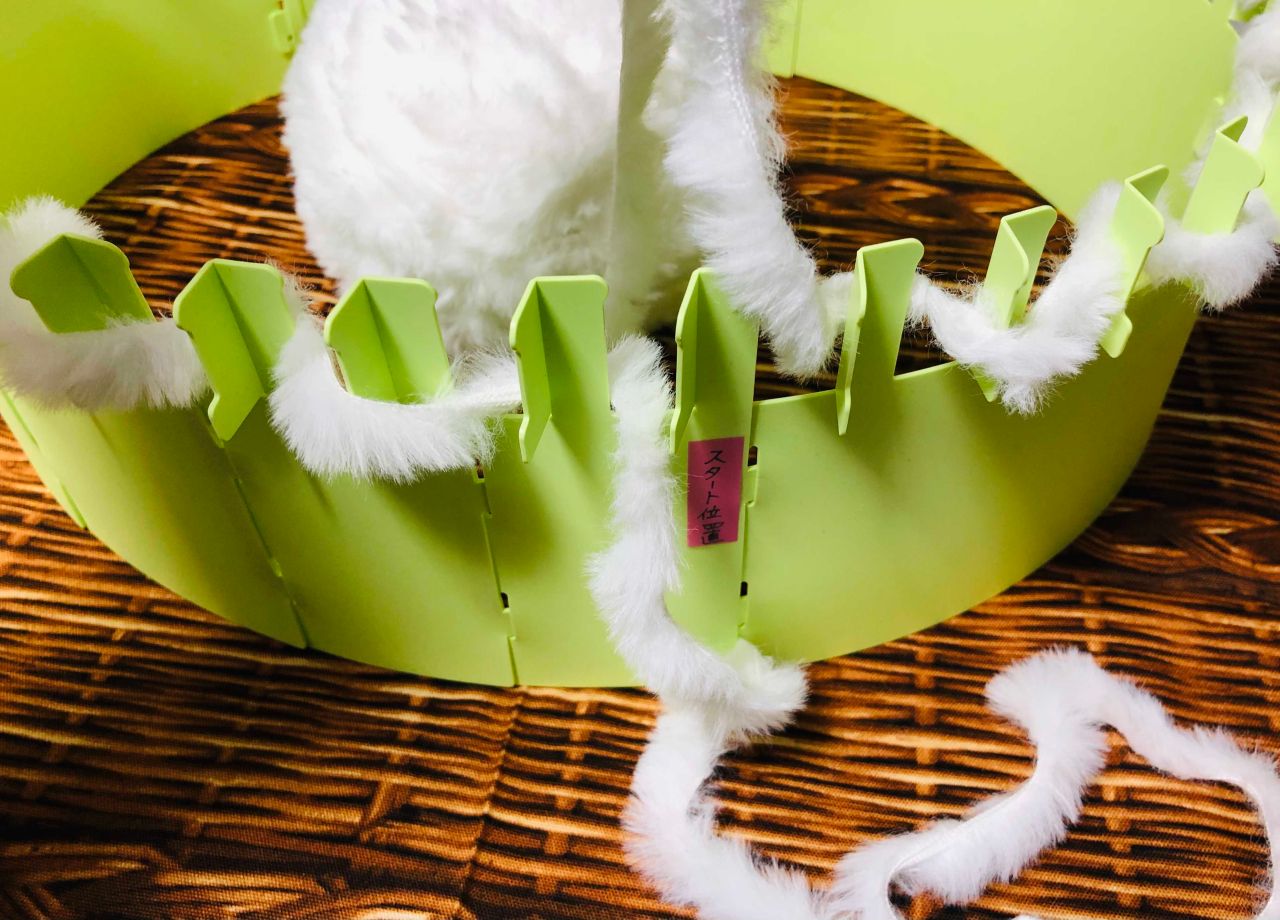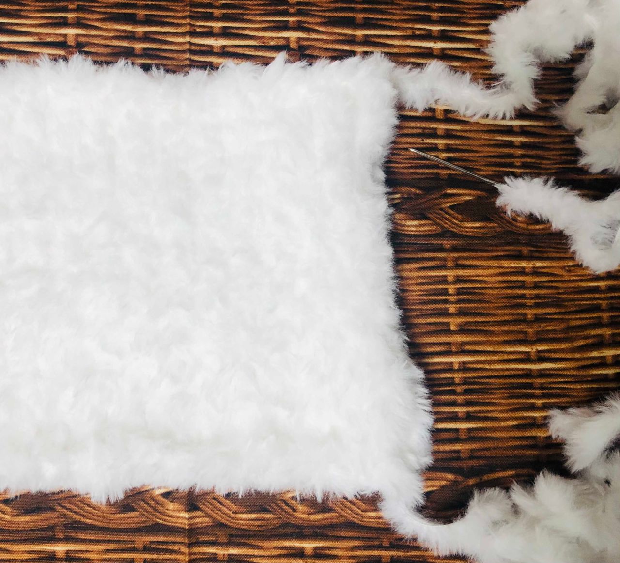 (今回の糸は毛足が長く編み目が見えづらいです。編み始め側の2段目から3段目の辺り、